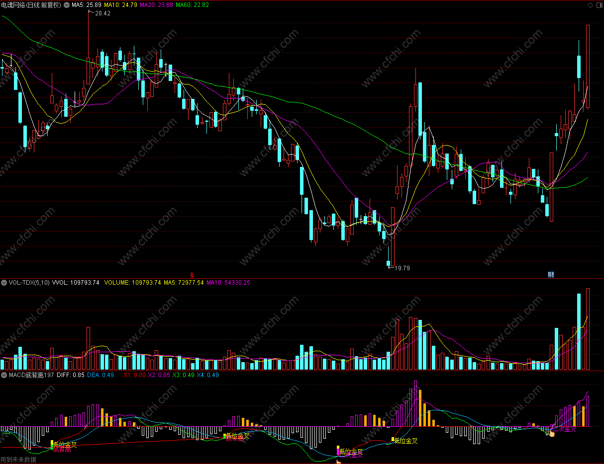 底背离:=REF(CLOSE,A1+1)>CLOSE AND DIFF>REF(DIFF,A1+1) AND CROSS(DIFF,DEA);