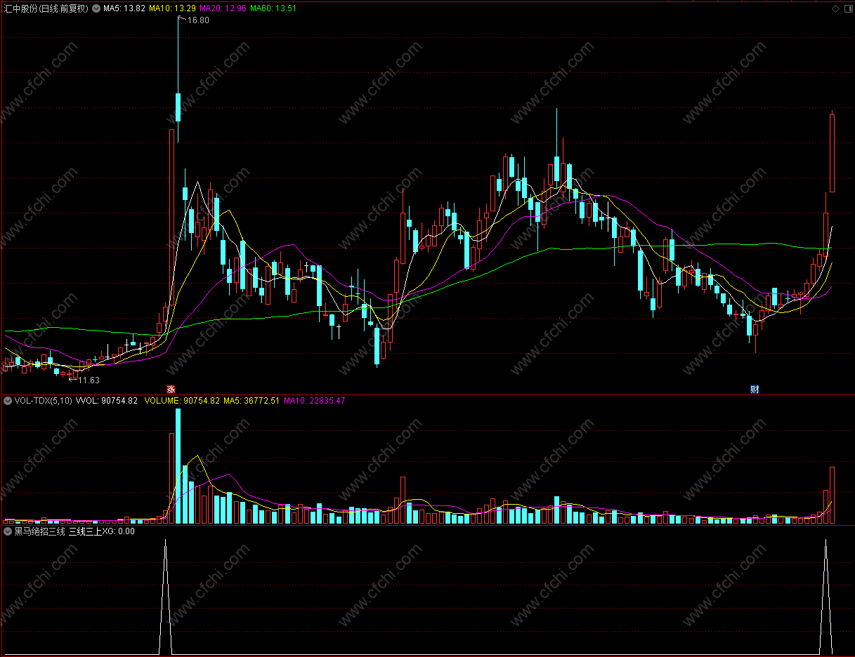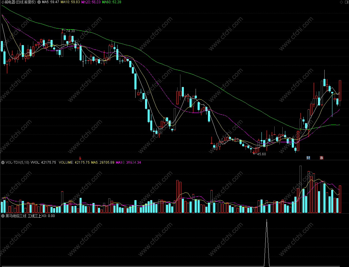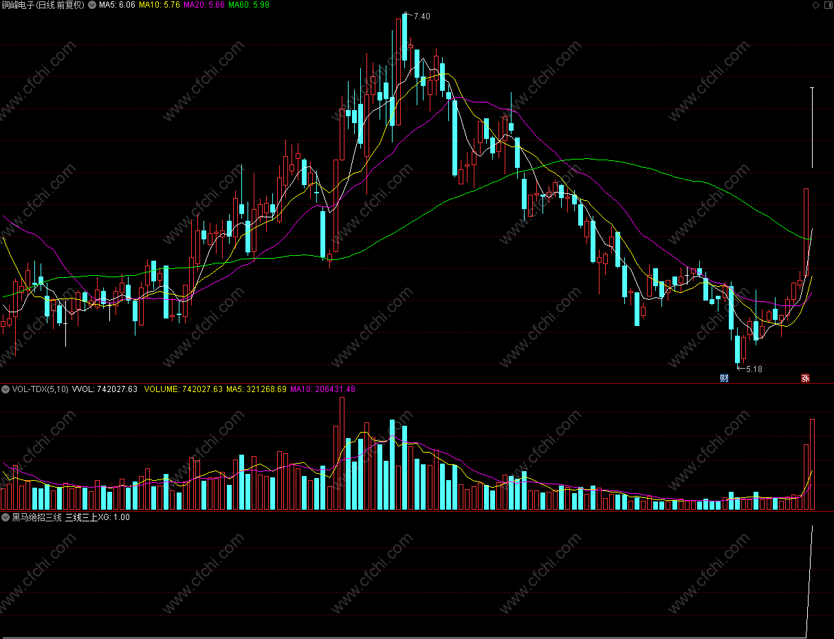 三线三上XG:五日线XG1 AND 五日量XG2 AND MACDXG3;