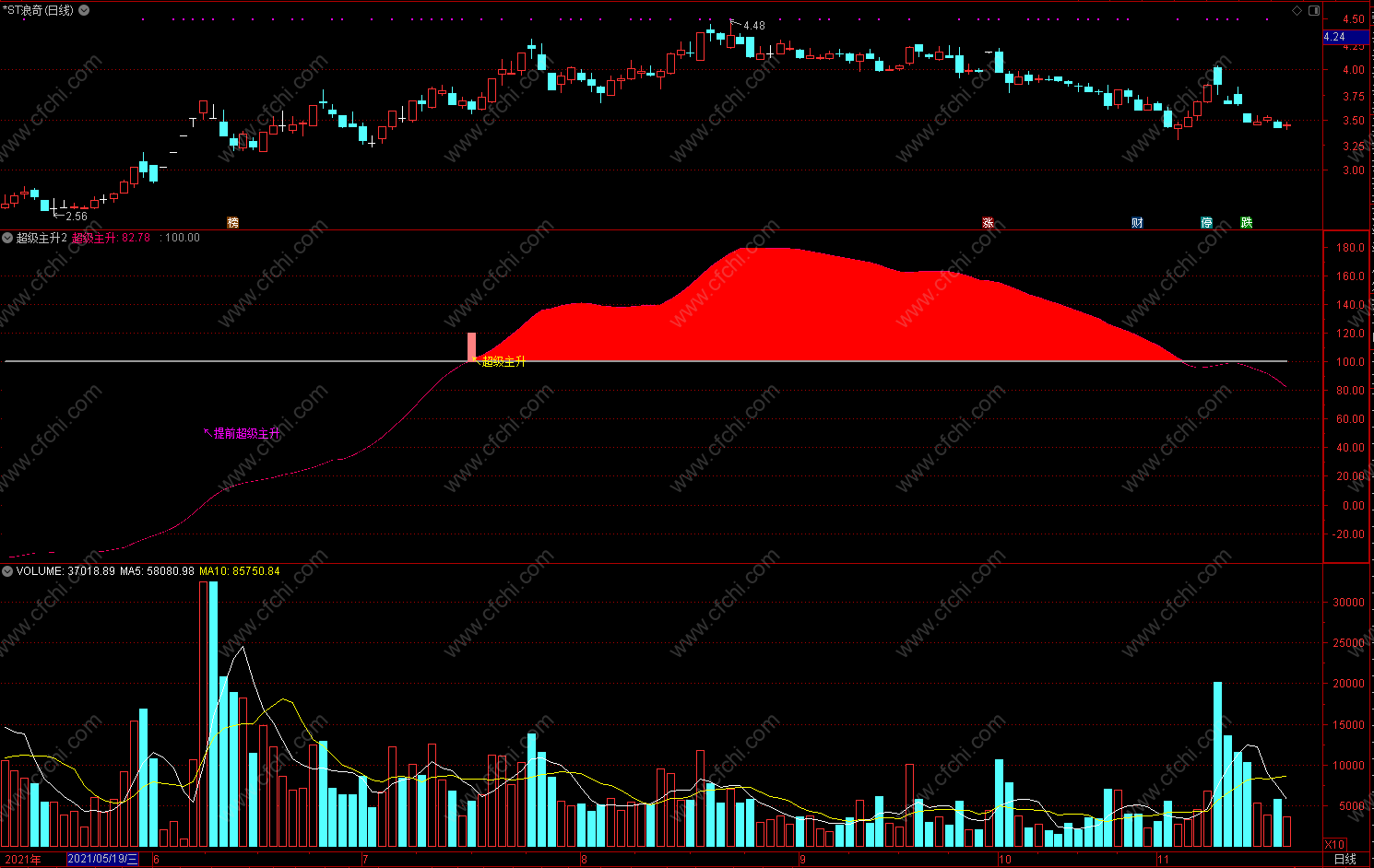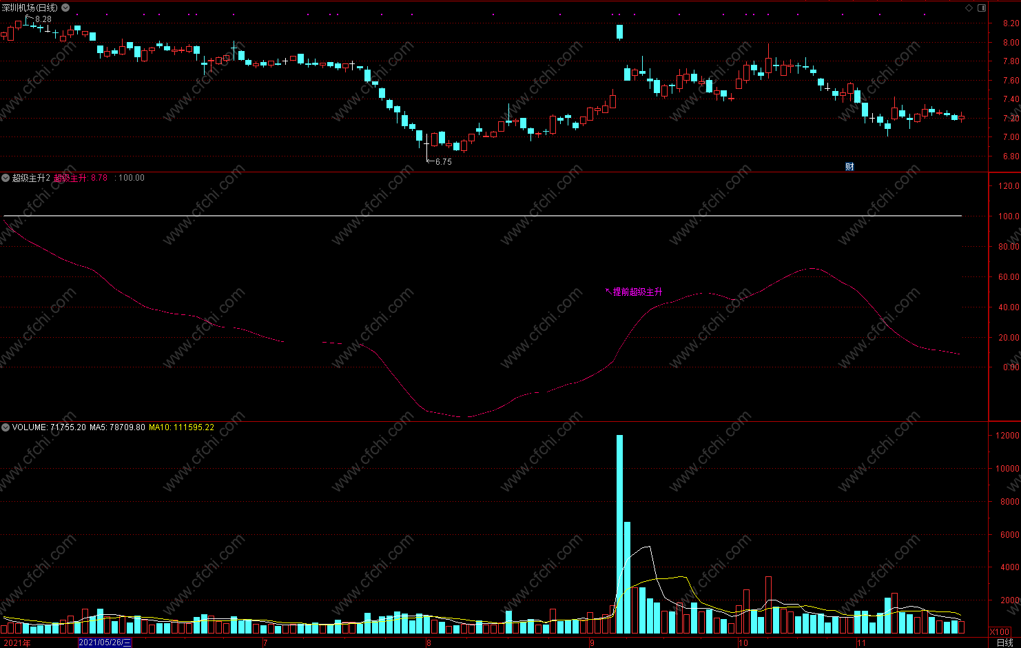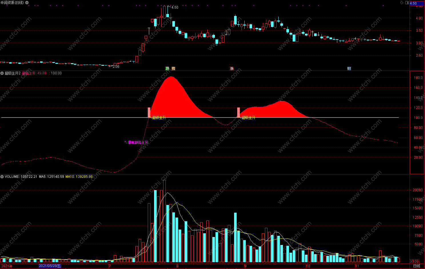 【通达信免费源码指标公式】超级主升2指标公式 副图 源码 无未来