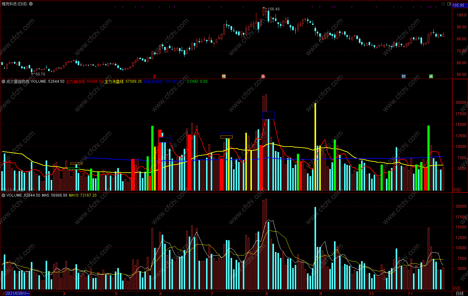 (【通达信免费源码指标】成交量趋势拐点副图指标公式 源码)