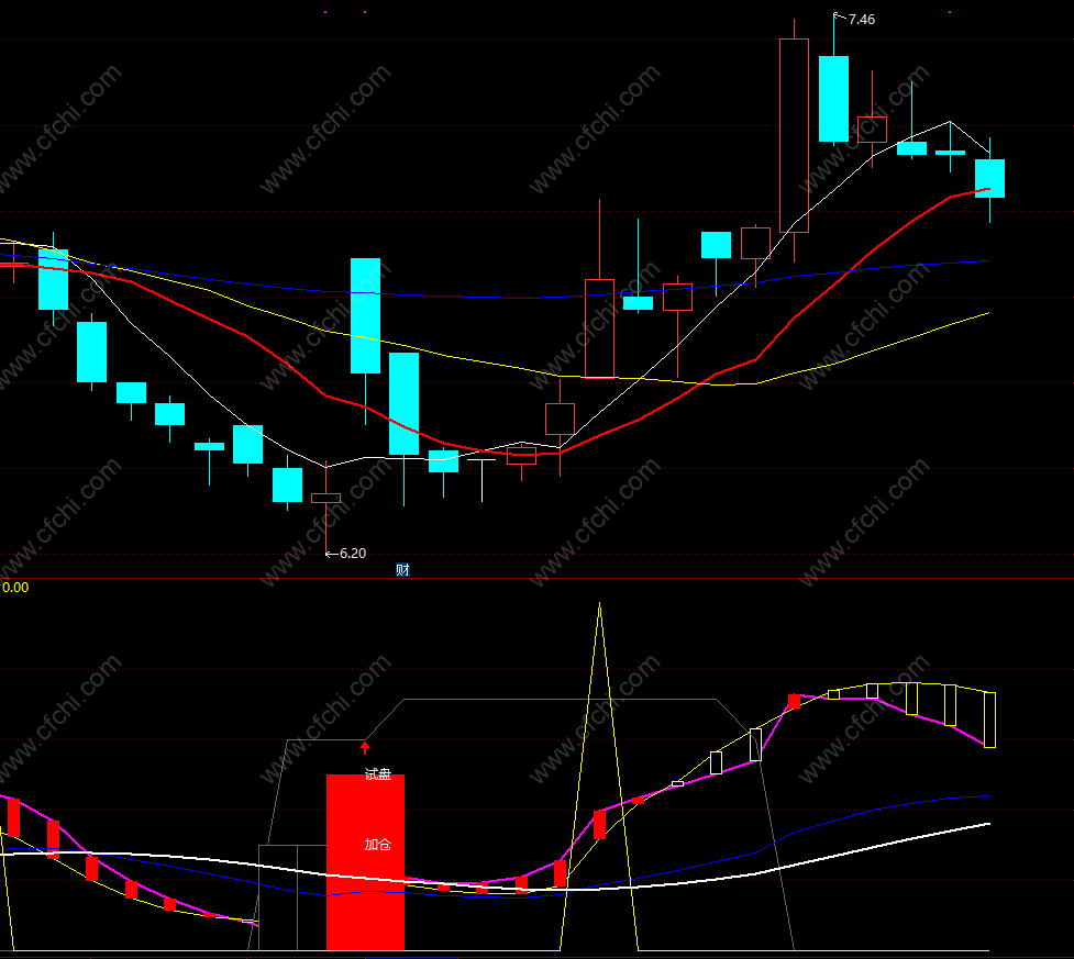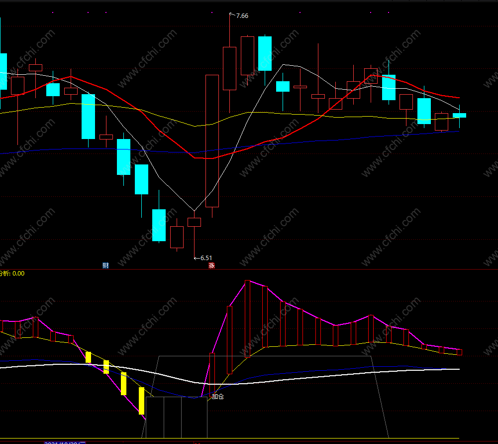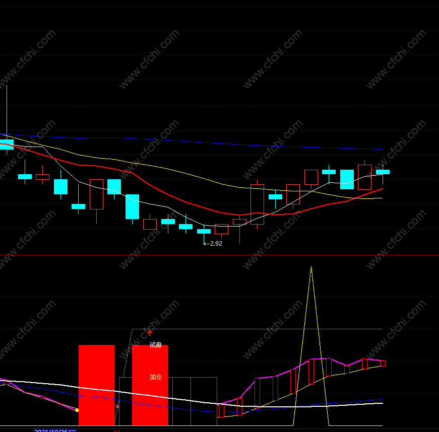 副图红色箭头,“试盘、加盘”开始关注,出现黄色箭头时追涨时机,短线绝佳买入点指标,预示着这个股票上涨的趋势