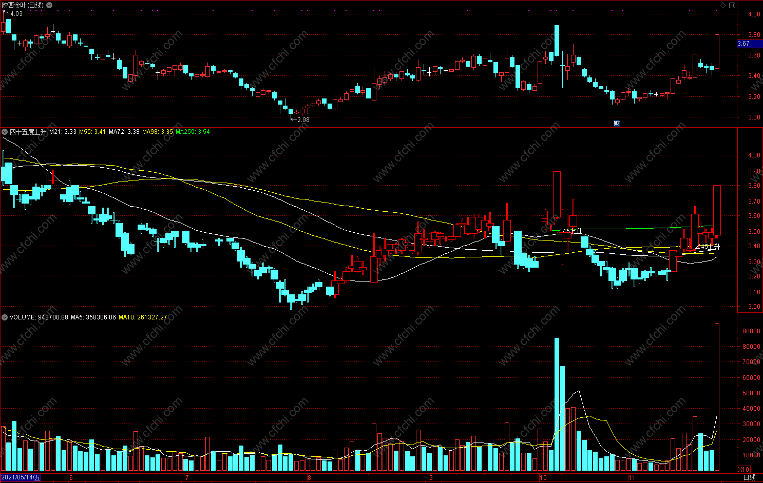 (四十五度上升指标公式 通达信副图指标公式 源码)