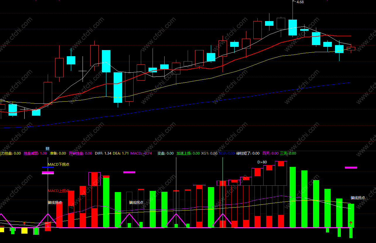 M1:=MACD>REF(MACD,1) AND DIFF<DEA;