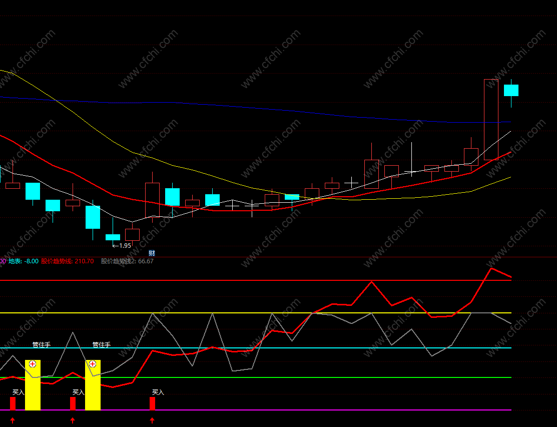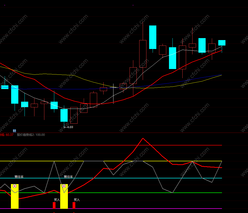 出现红色柱或者箭头“买入”上涨趋势