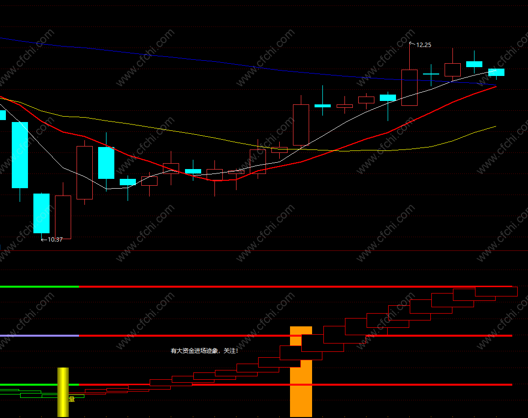 买点:当出现黄色柱形并伴红色波段提示时,可积极关注。