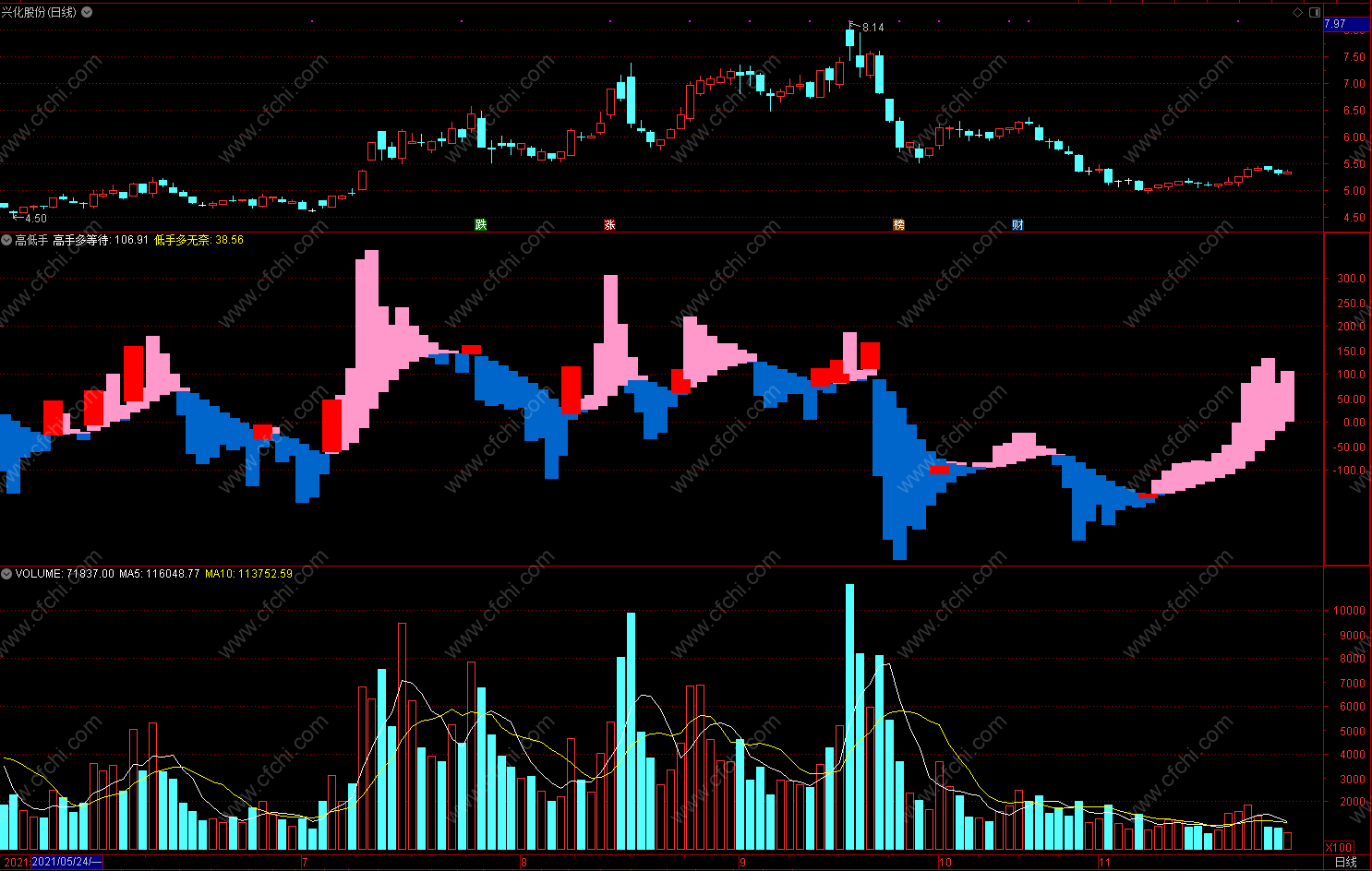 【高低手】粉色柱子买入蓝色柱子卖出 通达信副图指标公式 无未来