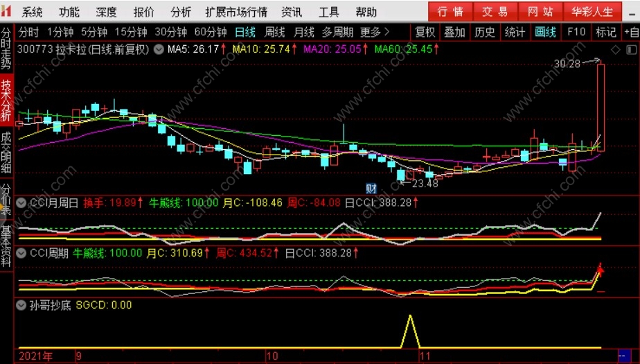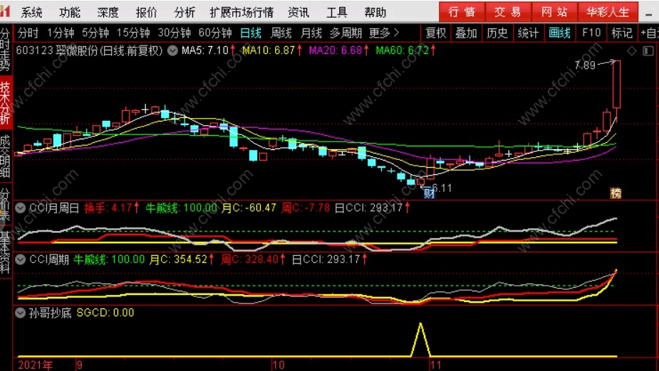 本帖包含CCI日周月副图(有隐形未来)、CCI周期(修正后的CCI多周期,无未来,是本帖的核心)、孙哥抄底/选股(配合前两个指标选股操作很精彩)指标等五个指标公式。