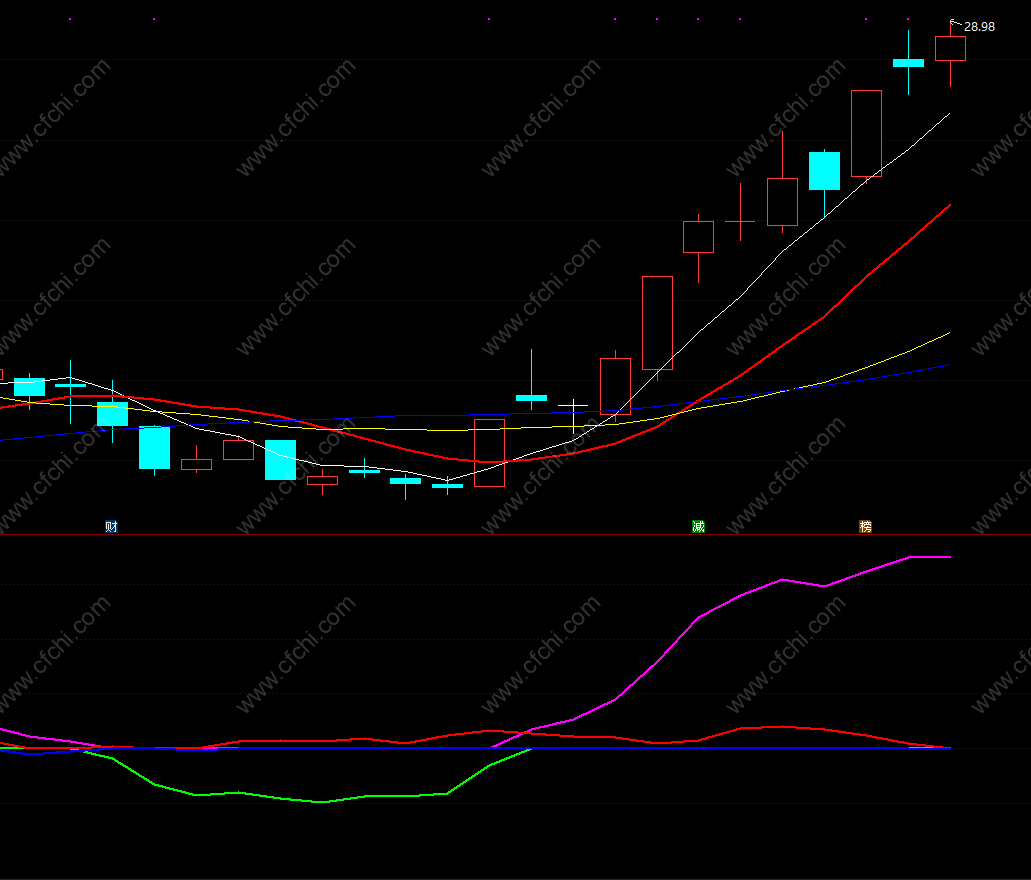 出现紫色线建仓机会,出现红色的加仓。显出红线没有出紫色线不考虑,这是个股表现弱于大盘。个股均线粘合出现信号也不要急于买入,一般空头趋势下会继续下跌。