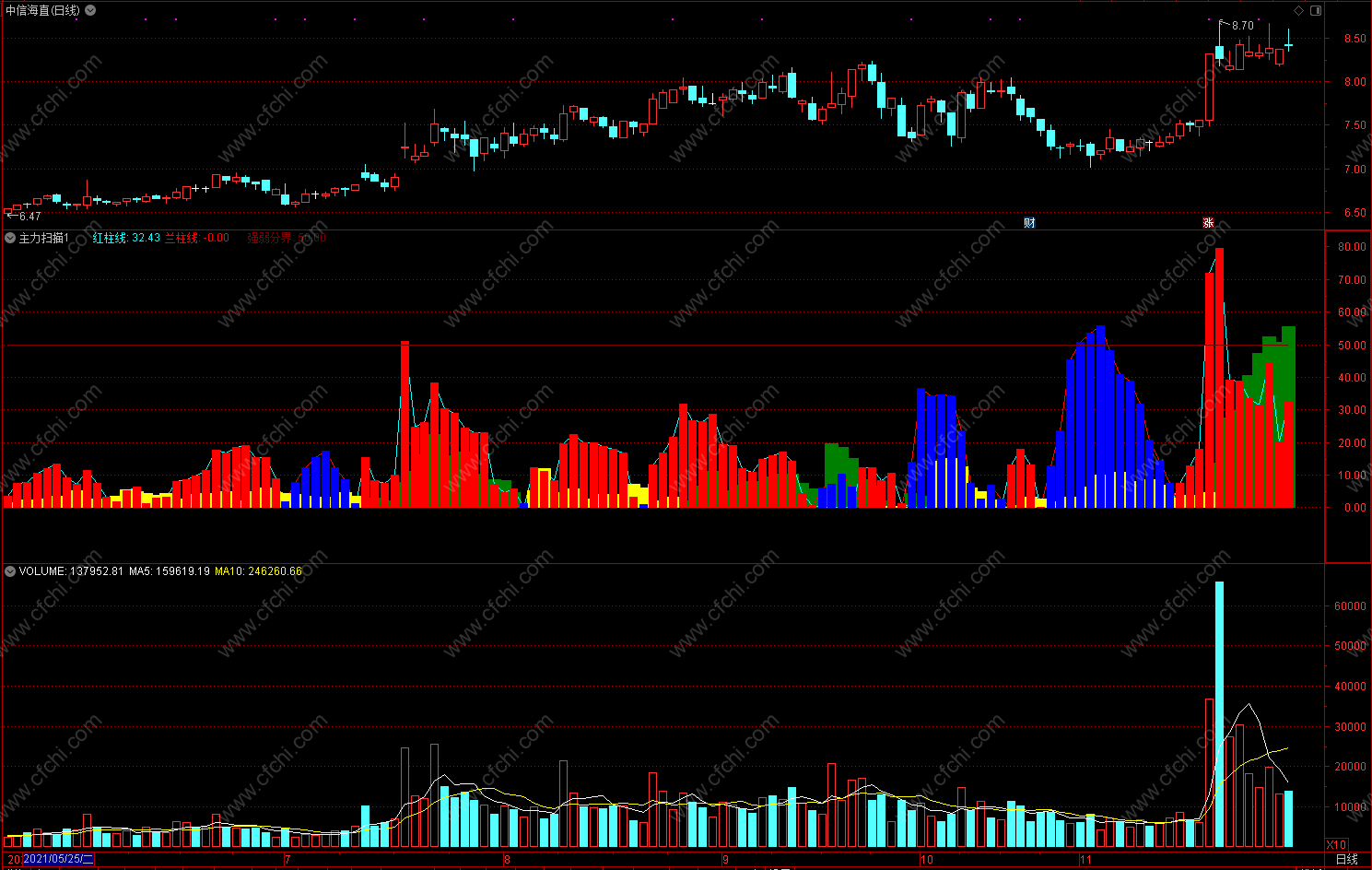 (主力扫描1 颜色区别一目了然 通达信副图指标公式 )