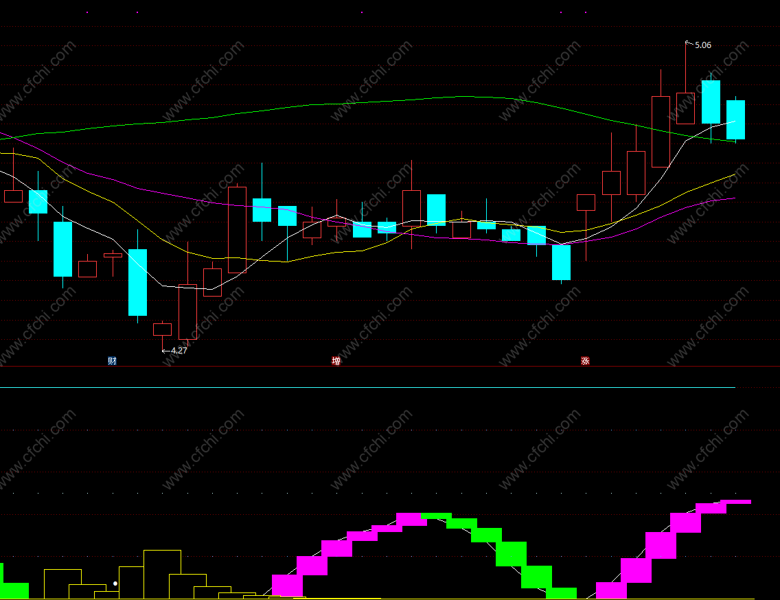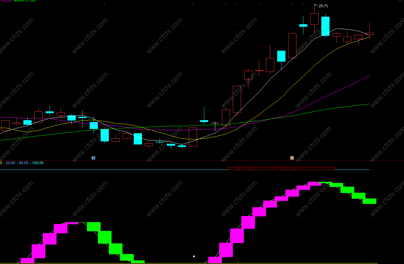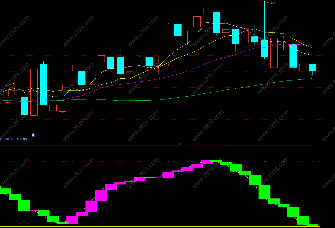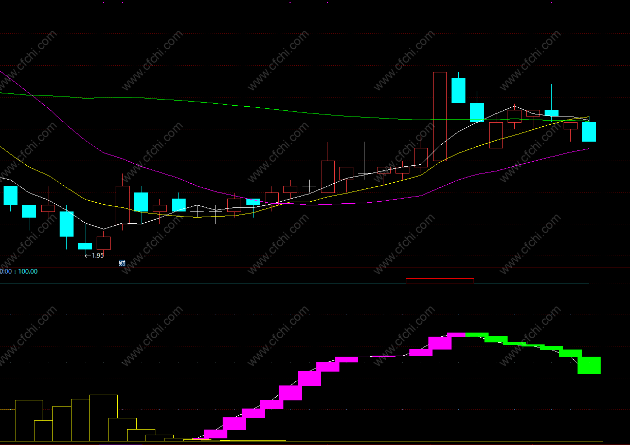 粉色波段上涨趋势,绿色波段下跌趋势!