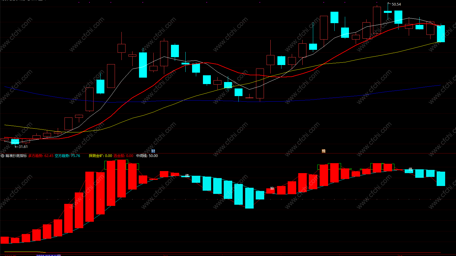 出现黄色柱关注,红色柱子为准备抄底阶段,低位出现的信号准确性更佳。