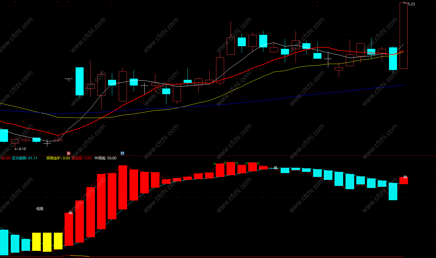 探测金矿:(空方趋势<12) AND (空方趋势<=多方趋势),COLOR00FFFF;