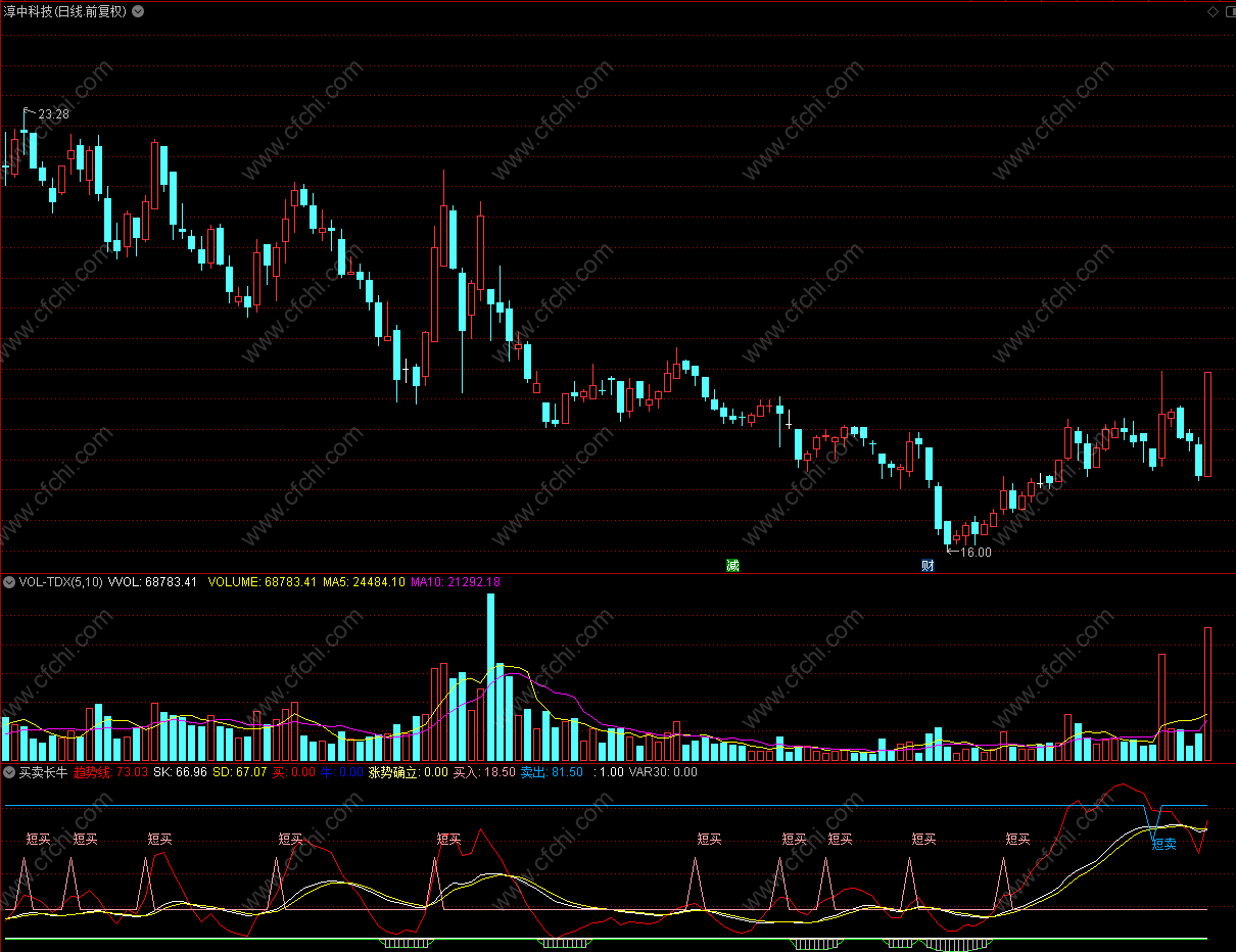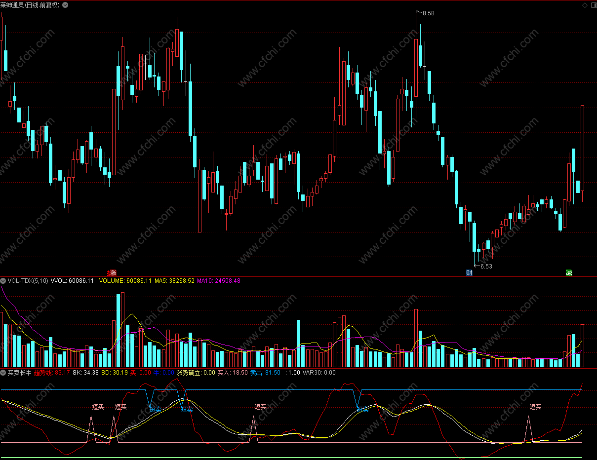 涨势确立: VAR1*(VAR2C>0 AND VAR2D*16+81.5)*VAR1,COLOR80FFFF ;