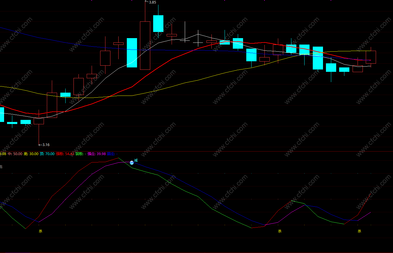 财富池指标公式网(www.cfchi.com)提醒您:指标公式是通过数学逻辑角度编写而来,仅是股票分析环节中的一个辅助工具,对股票选股效率和分析便捷上起到一定的作用,股市是具有不确定性和不可预测性的,请正常对待和使用指标公式!