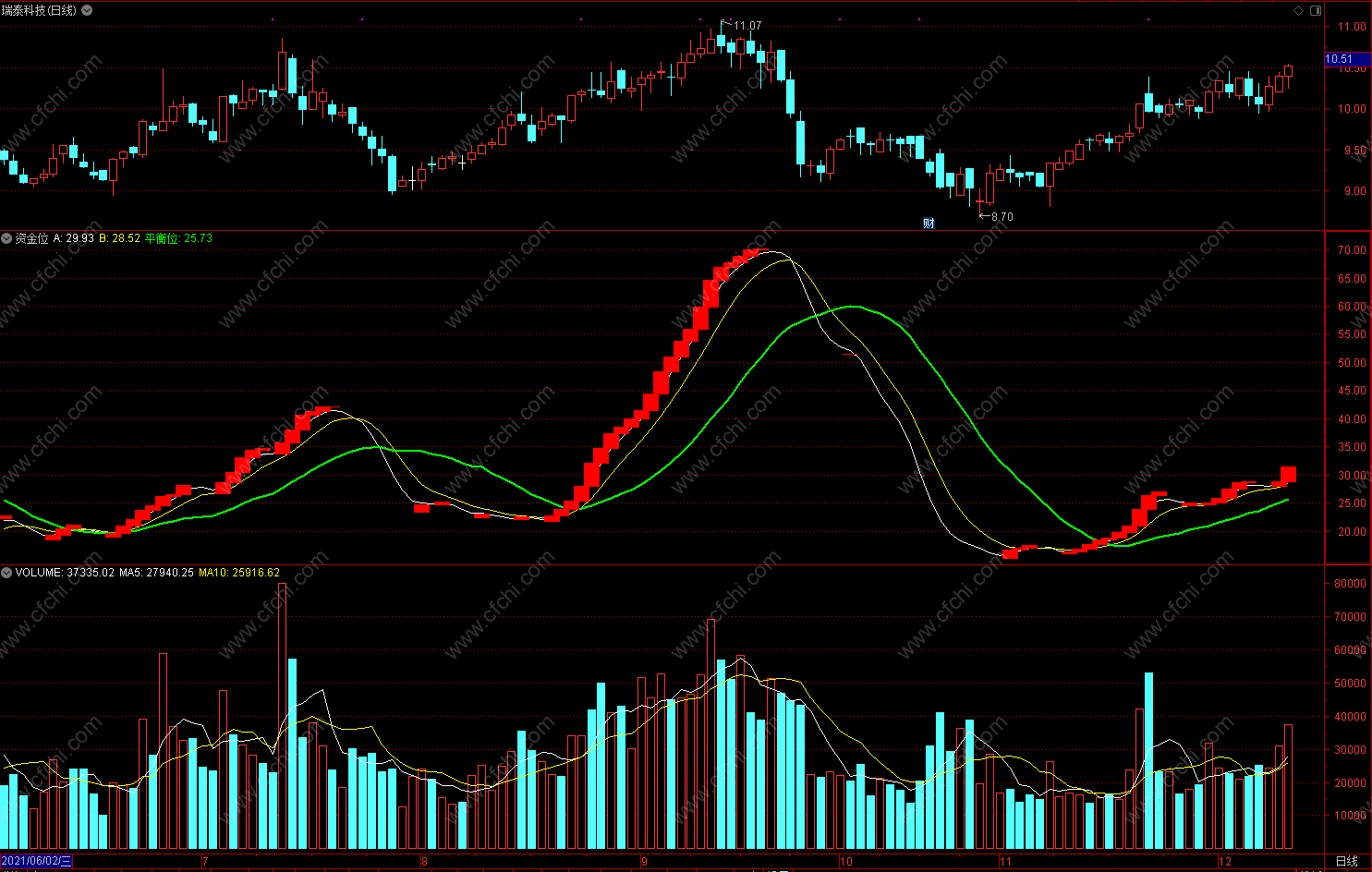 资金位 上穿多头市场反之空头市场 通达信副图指标公式 源码 无未来
