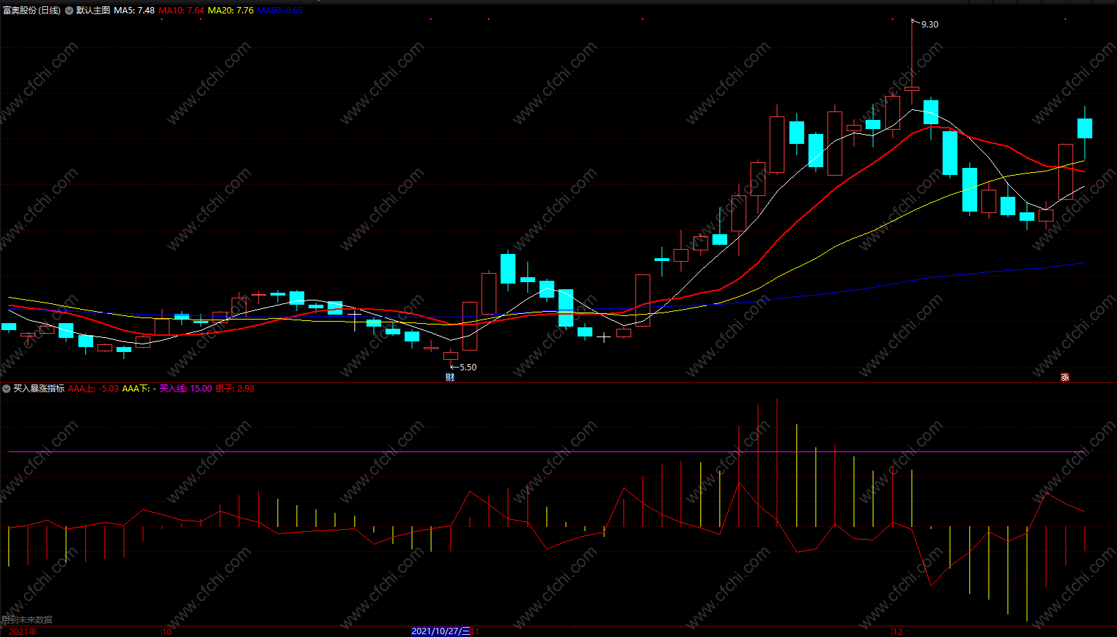 (买入暴涨指标 上穿就买macd趋势指标 通达信公式副图 源码 贴图)