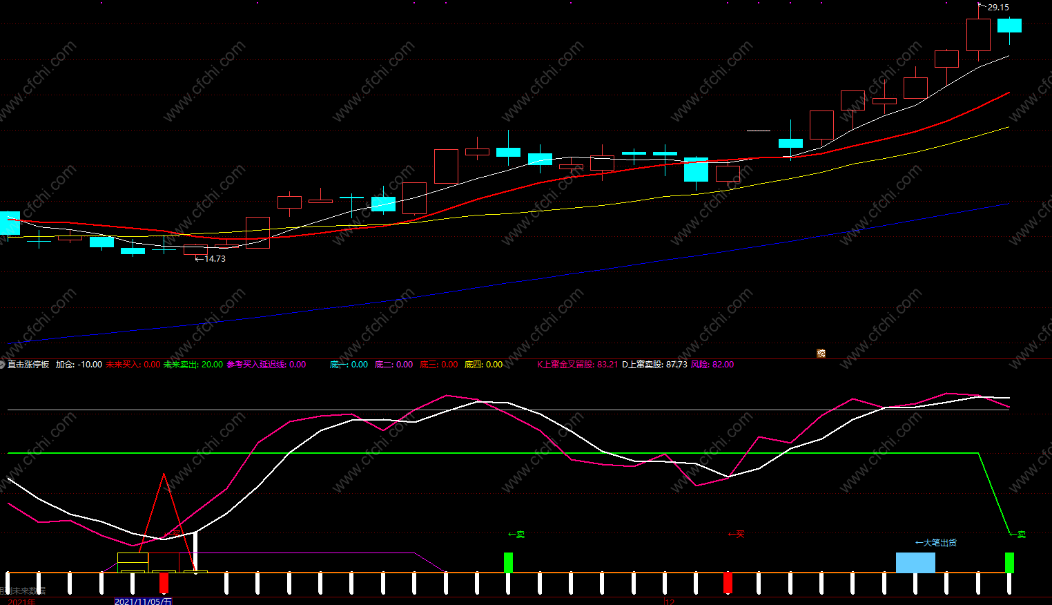 当图形下出现买即可建仓,卖即平仓,还有提示大资金活动。