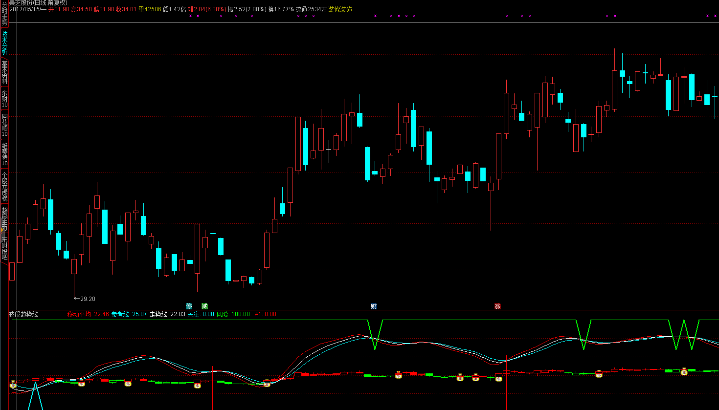 关注: IF(CROSS(移动平均,参考线) AND