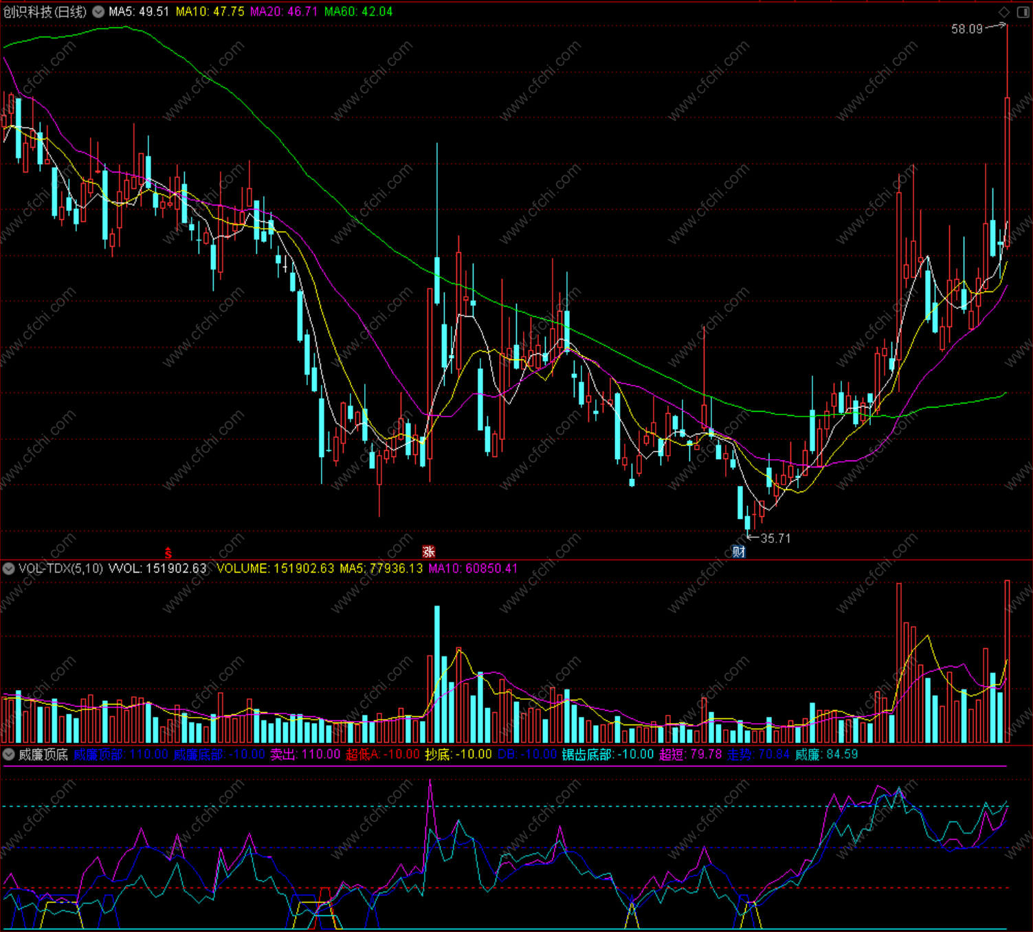 协助大家能较好的判断顶底的位置(只能参考,神仙也甭想真正抓住顶底的准确信号!)。其中,将广泛使用的威廉指标稍加变革,配上锯齿波段(此指标短线操盘挺好用),共同扑捉顶底信号。期待大家能有个好的收获!!!