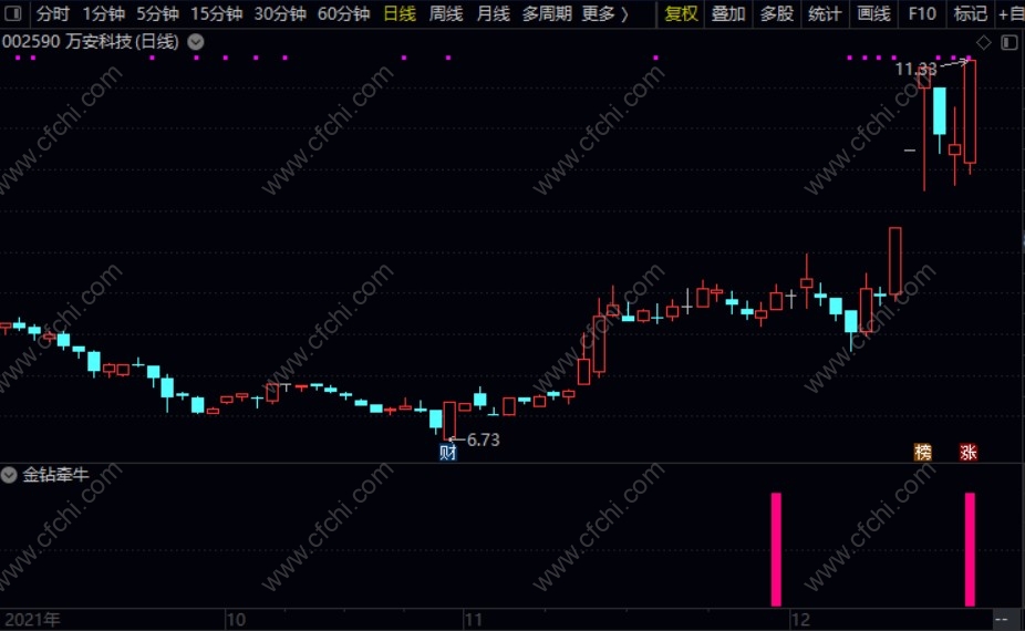 牵牛属于短线类指标,可当天预警信号,指标信号比较少一些,出信号后尽量阴线关注,
