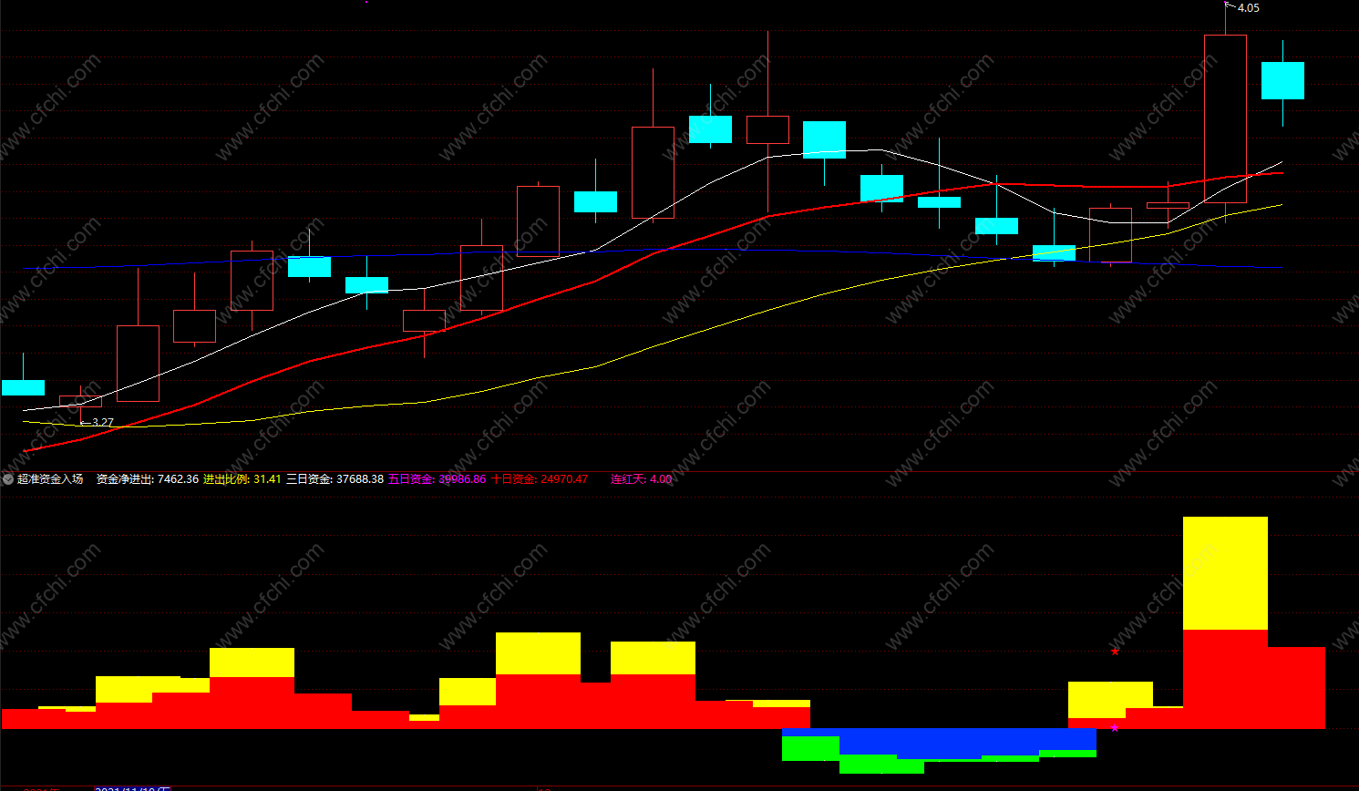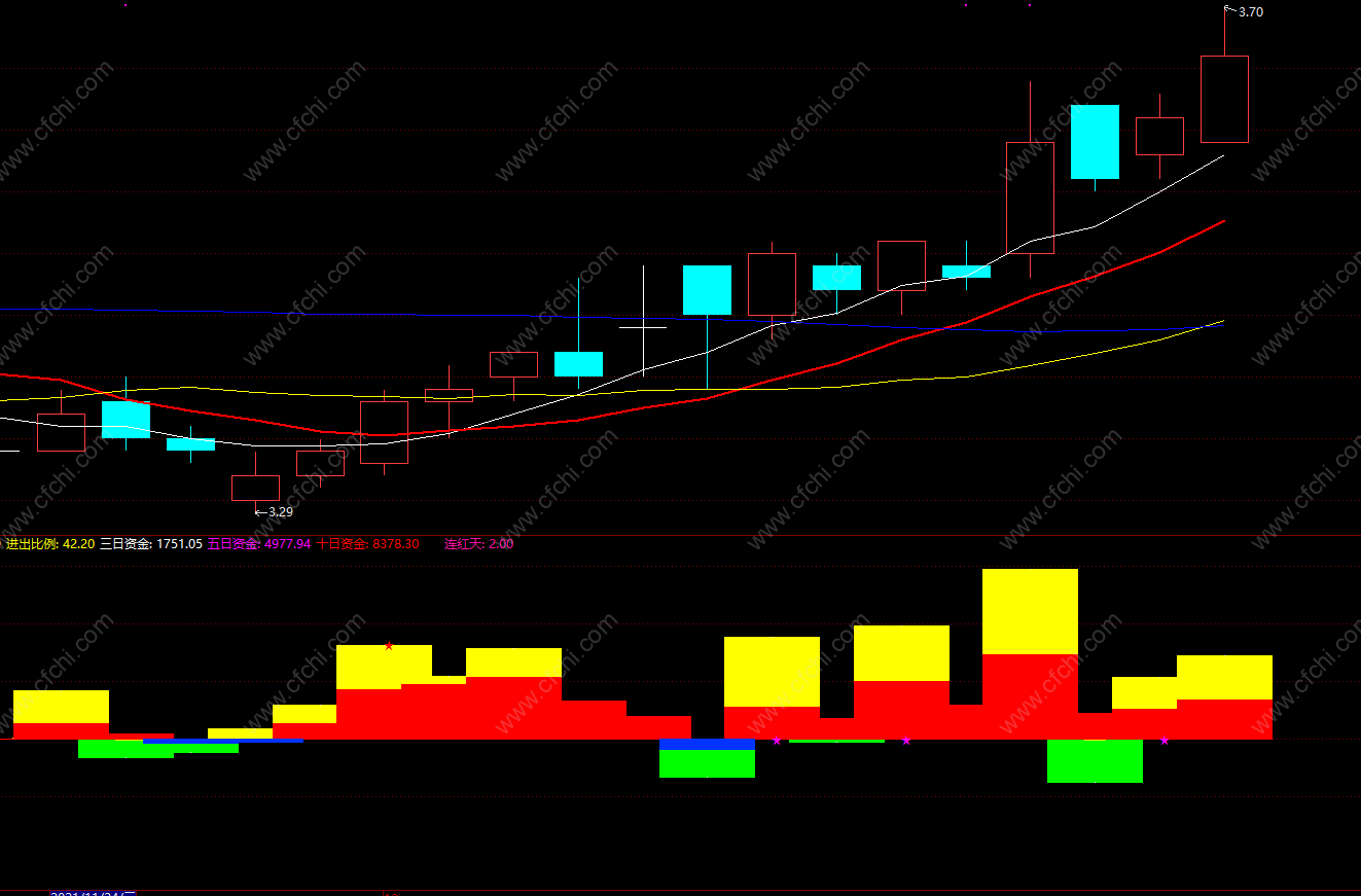 三日资金:SUM(资金进出,3),COLORWHITE,NODRAW;