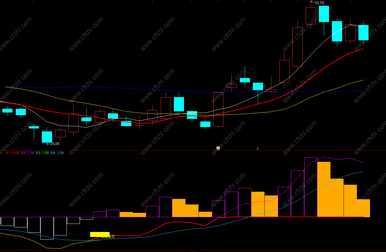 STICKLINE(MACD<0,MACD,0,4,1),COLORWHITE;