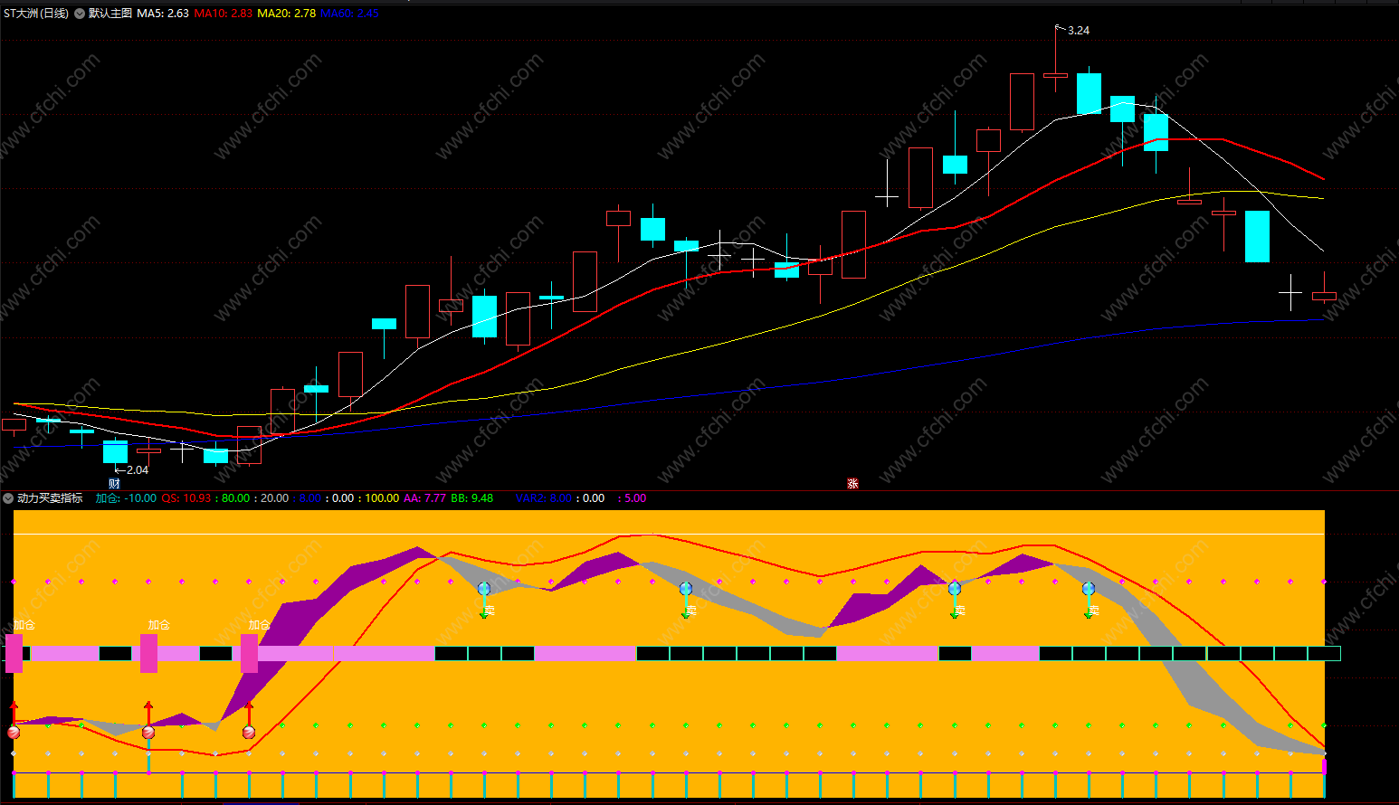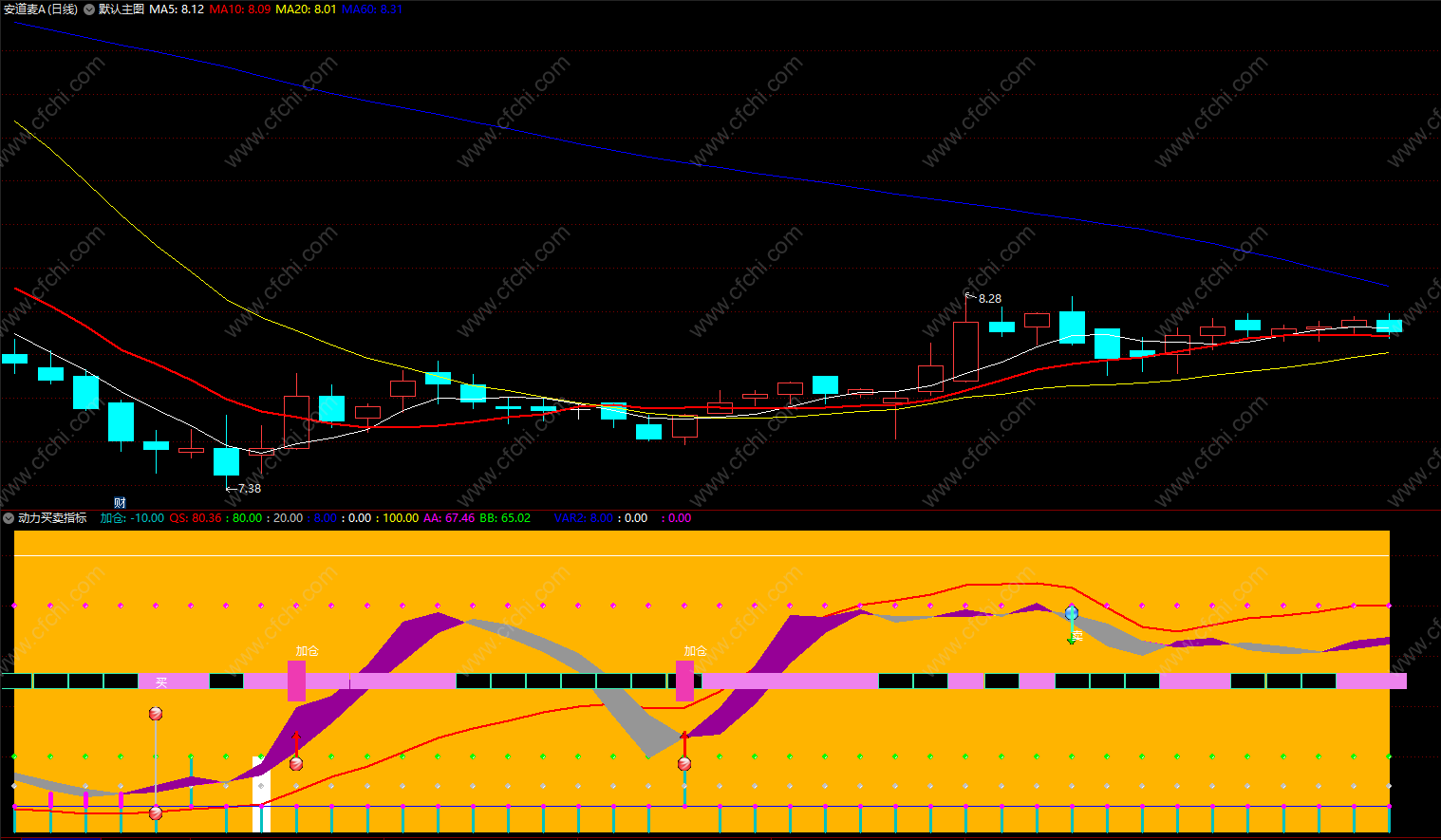 通达信动力买卖指标 简单实用买卖提示副图指标 源码 贴图