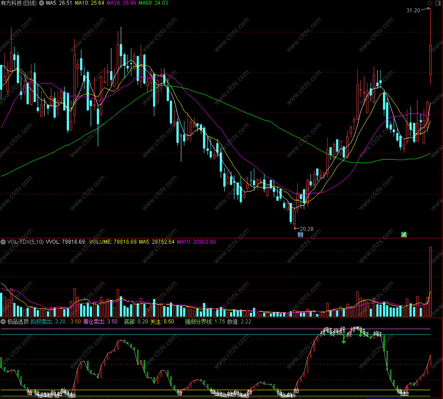 财富池指标公式网(www.cfchi.com)提醒您:指标公式是通过数学逻辑角度编写而来,仅是股票分析环节中的一个辅助工具,对股票选股效率和分析便捷上起到一定的作用,股市是具有不确定性和不可预测性的,请正常对待和使用指标公式!