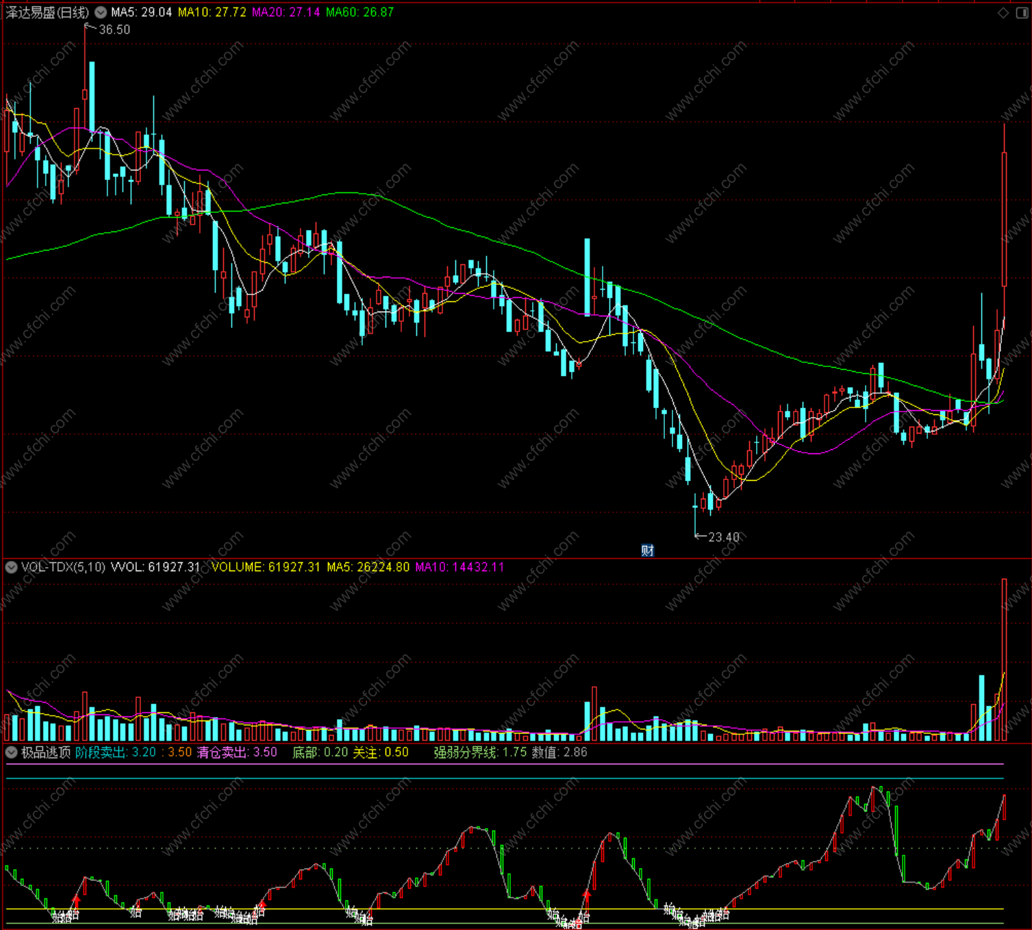 逃顶指标到达3.0以上的个股要谨慎买入了,对于逃顶指标到达3.3以上的个股,原则上不买入了,此时的下跌风险远远大于上涨的机会。