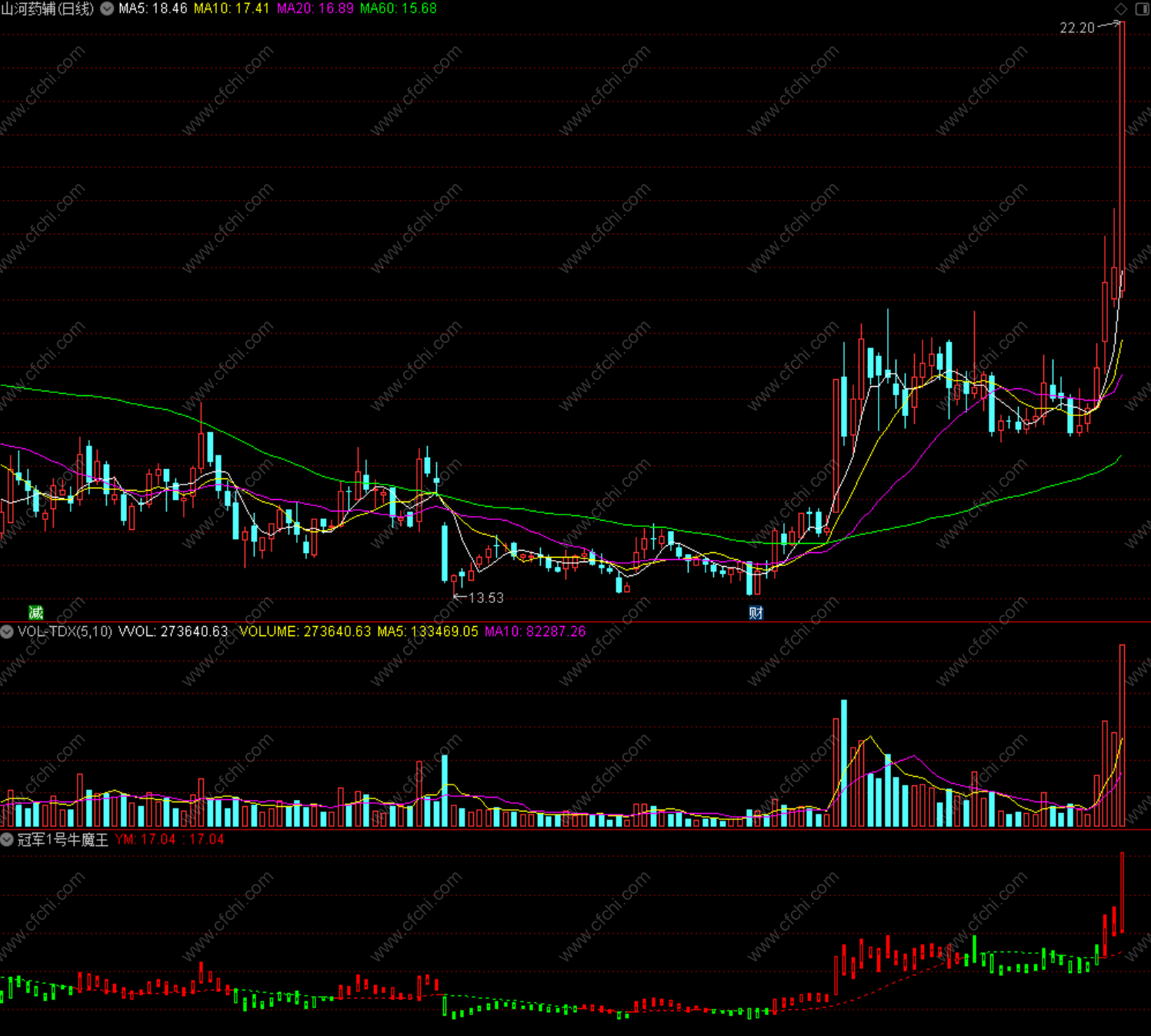 牛魔王:=(CLOSE+HIGH+LOW)/3>Y1M AND 金牛=1 AND PBX11>PBX22 AND VOL比>1 AND C<高度;