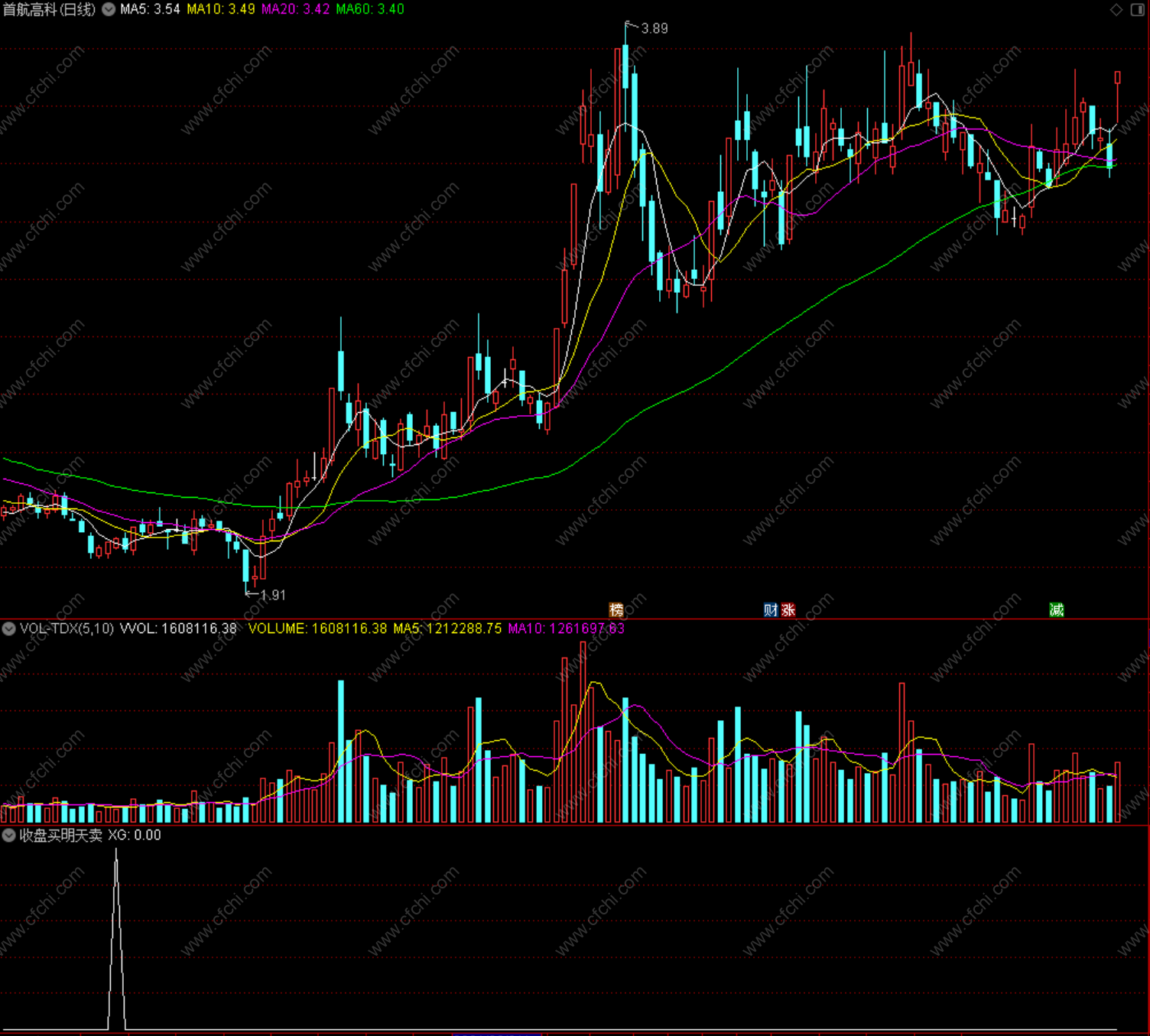 【收盘买明天卖】最多持股三天卖出,可以将止损设置为百分之二。勿做任何买卖依据!使用时请结合其他技术指标、成交量、大盘走势等多因素进行综合判断。