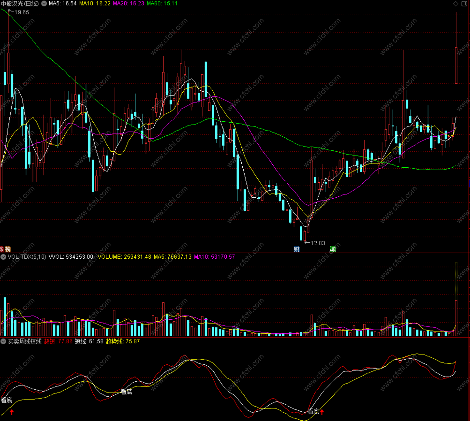 短线:EMA(超短,5),COLORWHITE;