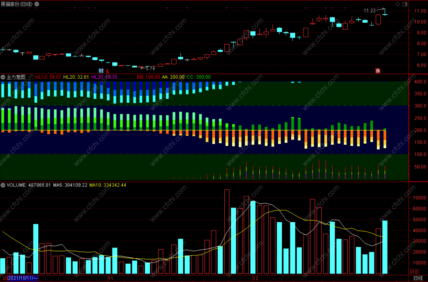 (主力意图指标 底部红黄筹码一出强势到来 通达信副图指标公式 源码)