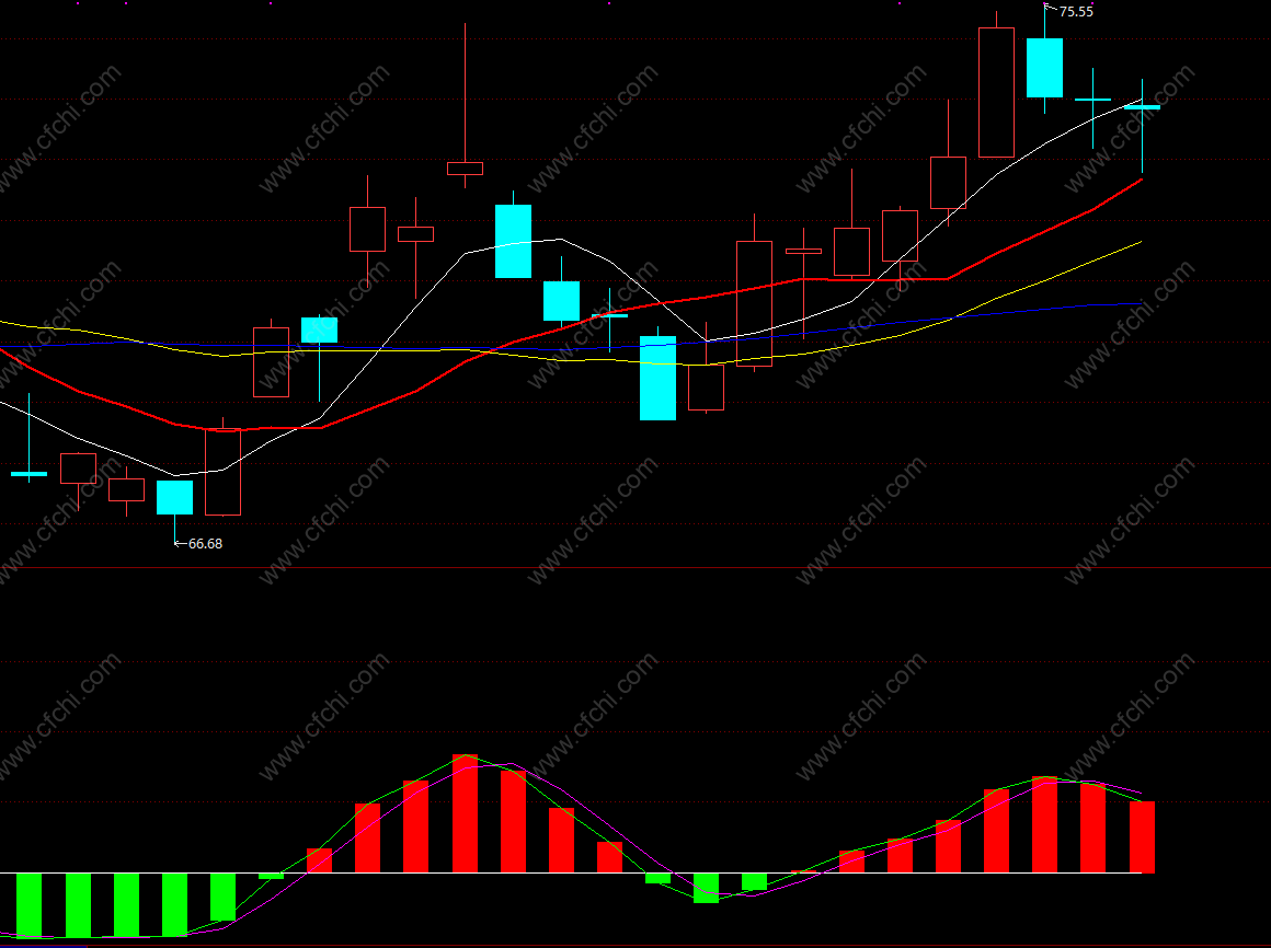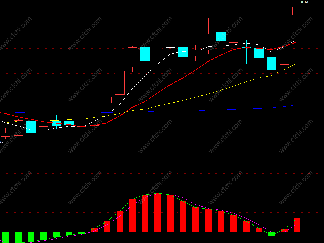 蓝线上穿0轴,且最好0轴上方同时出现黄色和绿色柱子为佳。出现红柱且蓝线拐头向下为卖点参考。
