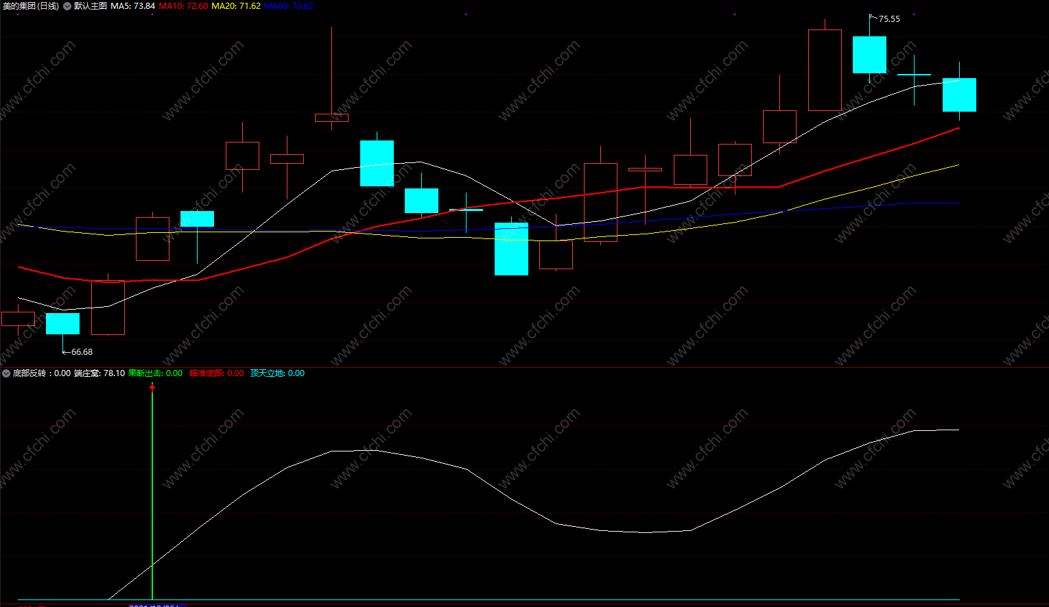 瞄准底部:(CROSS(RSI,11))*(70),colorred;