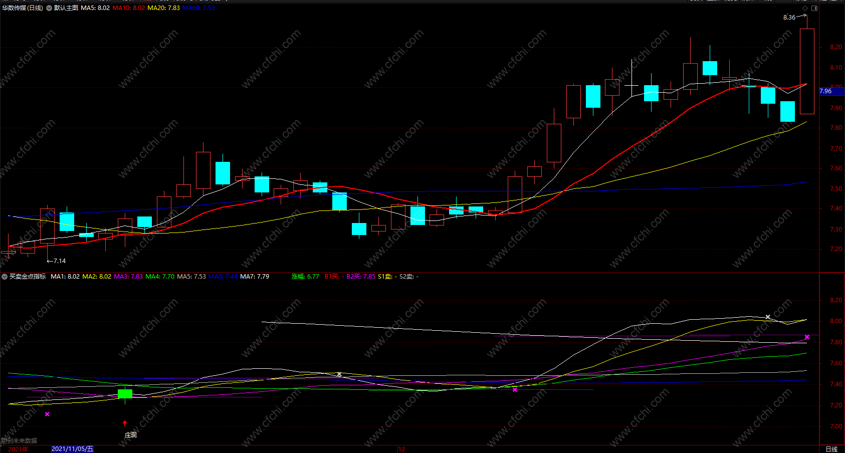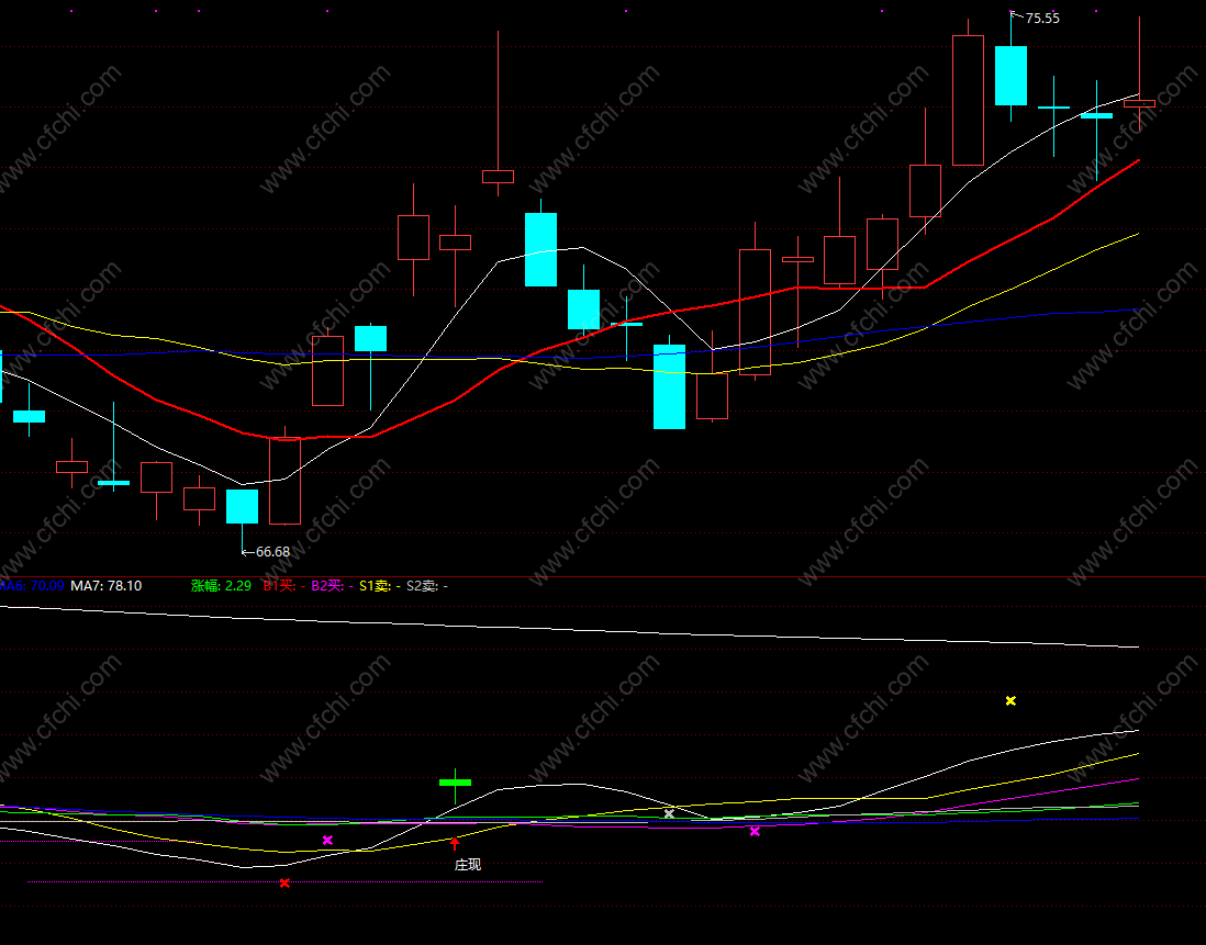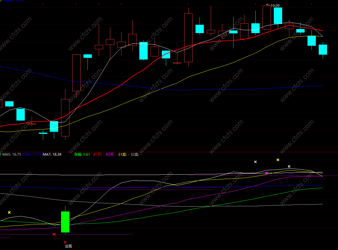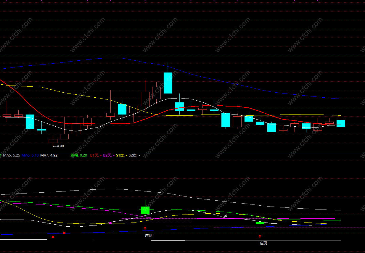 庄线买卖点,根据指标中出现的买卖点进行买卖,配合其他技术指标。