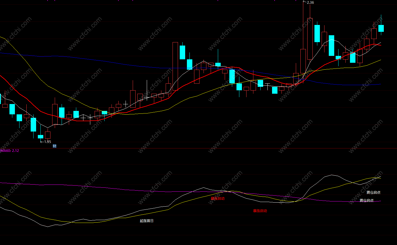 DRAWTEXT(Aw AND Bw AND Ew AND Fw AND TXw,L-0.03,'起涨首日');