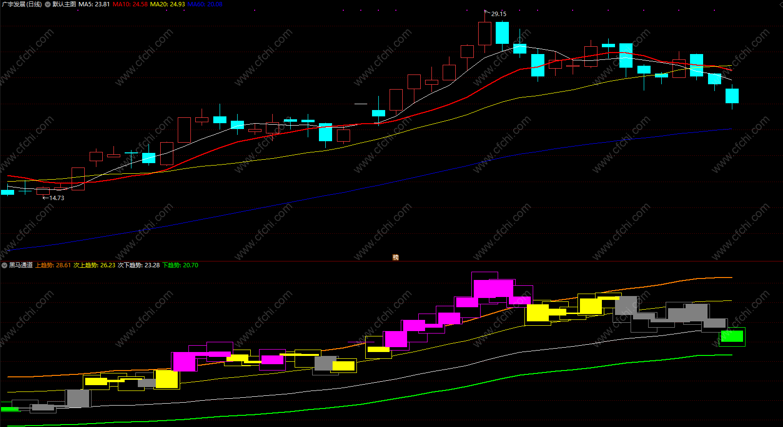 黑马通道公式 通达信红涨绿跌指标 副图 源码 贴图