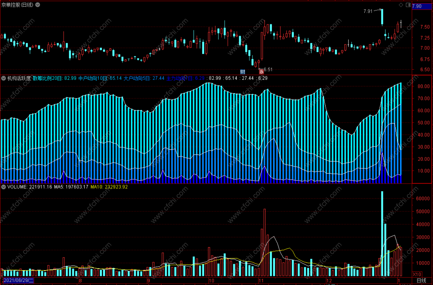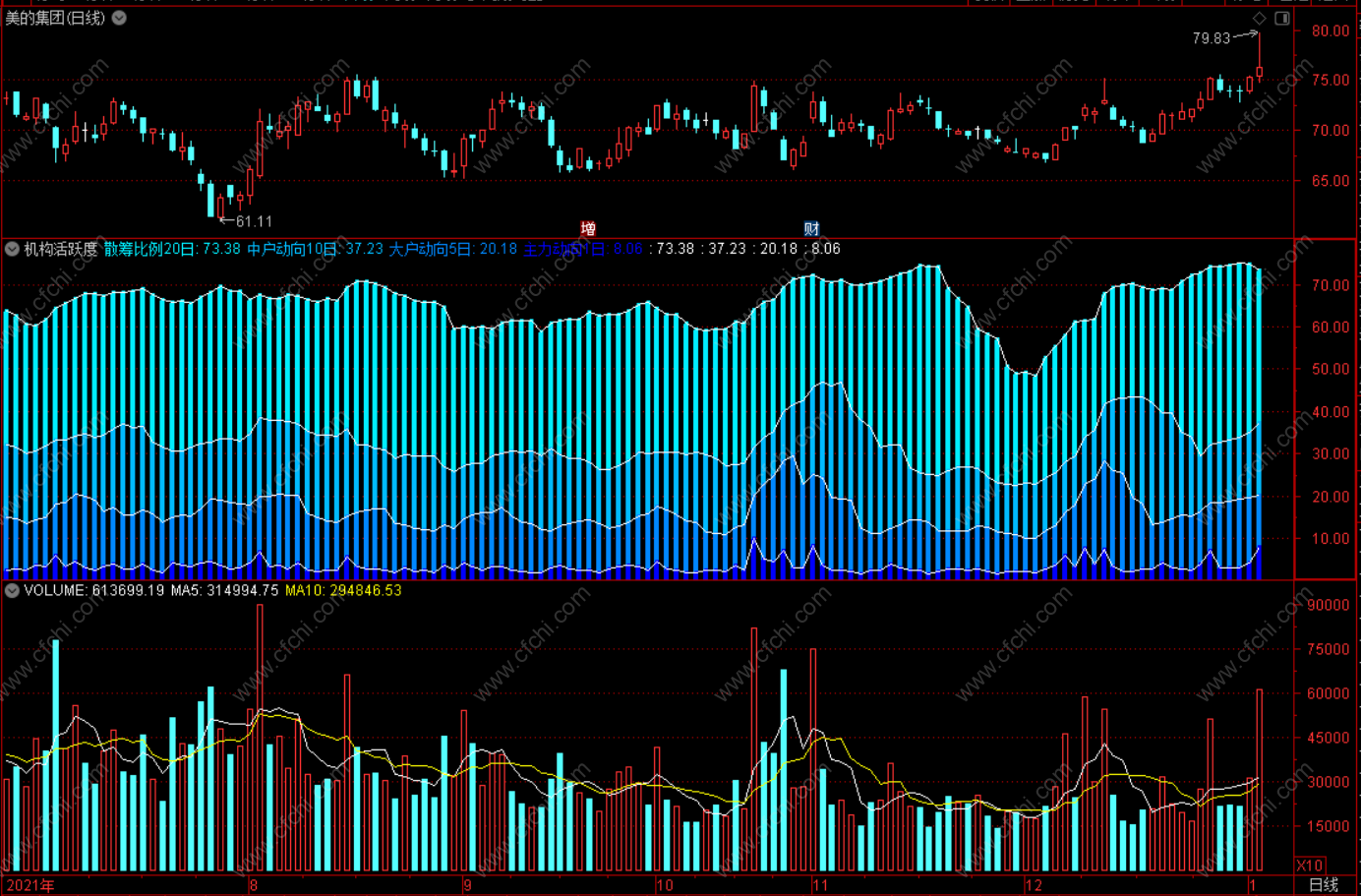 (机构活跃度YC 通达信指标公式 副图 无未来 源码)