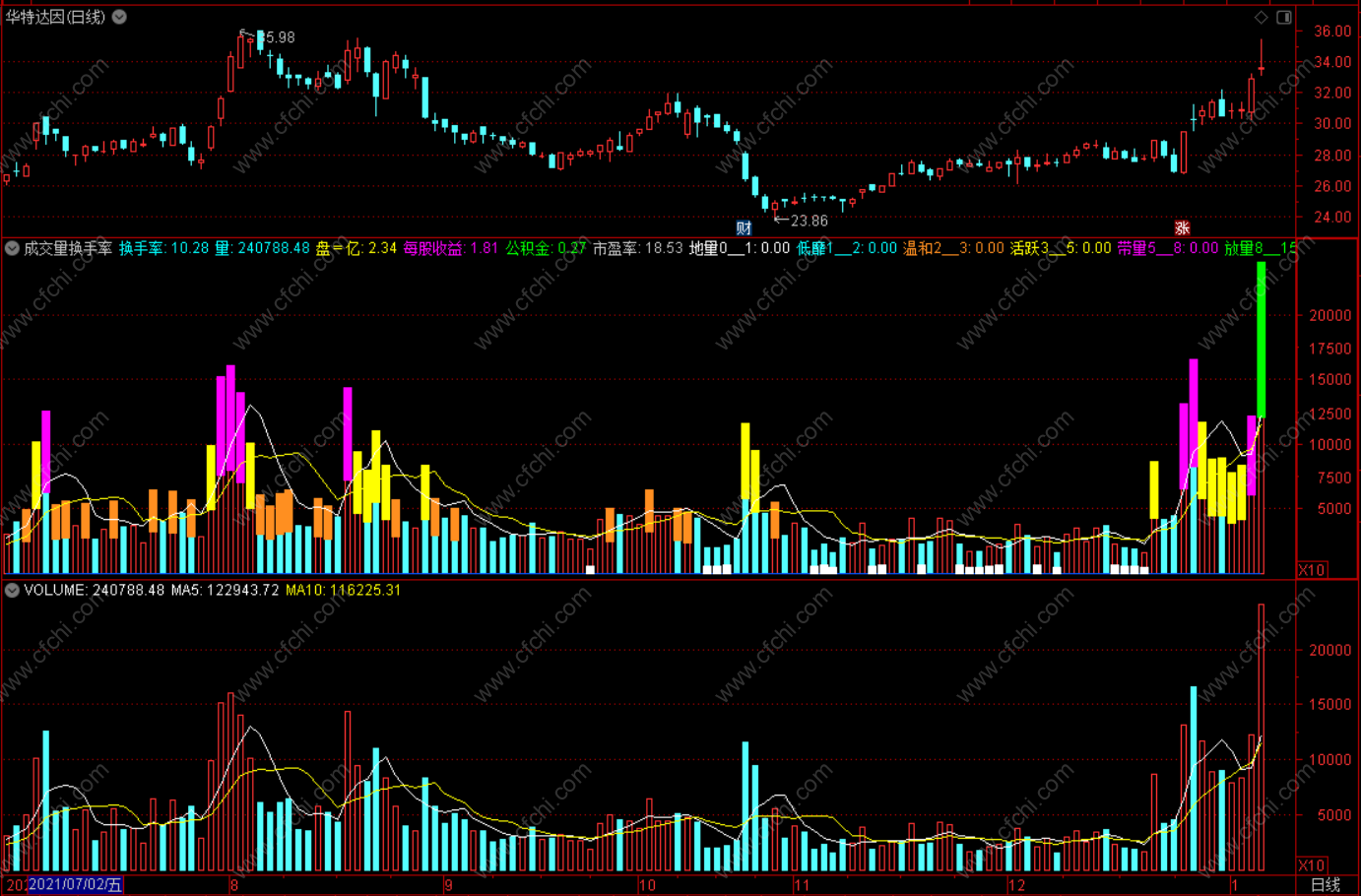 成交量与换手率在同一副图内,同时对成交量做“地量、低靡,温和、活跃、带量、放量、巨量、怪异”等8种分类,便于判别股票的活性,同时结合大盘所处阶段、个人操盘经验,适时做出是否抄底,逃顶,加仓等决策,会用的人一定会有所用