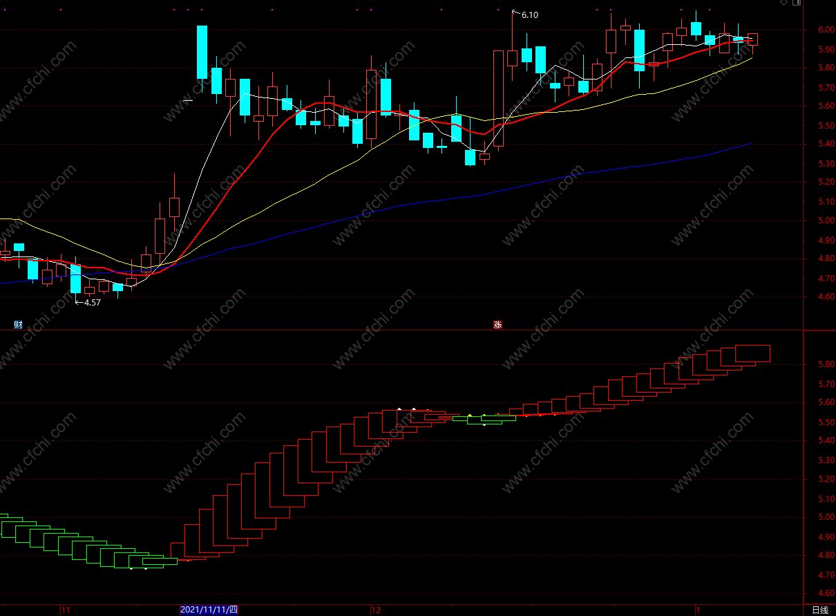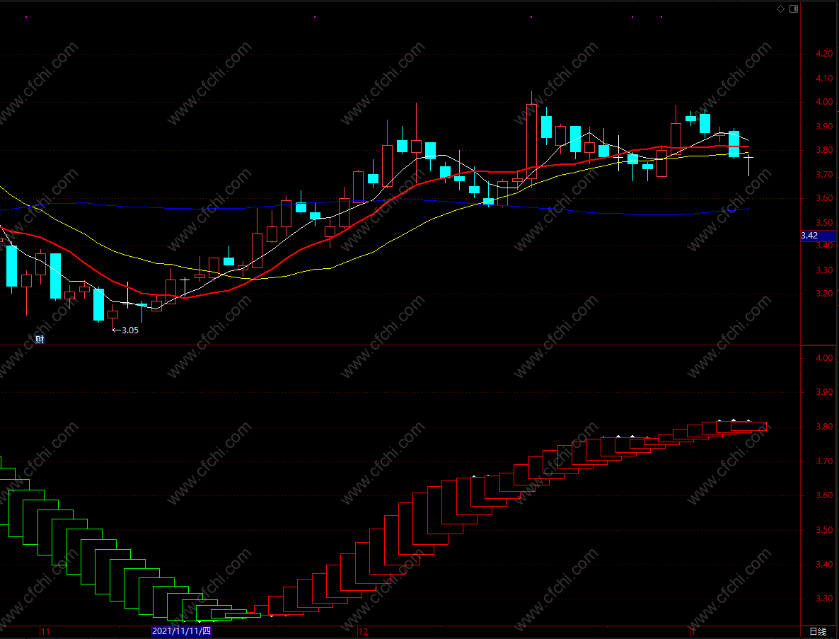 指标很简单,红柱持股,绿柱持币。长期下跌后出现红柱效果佳。长期趋势出现多头排列,出现红柱波段操作效果加。