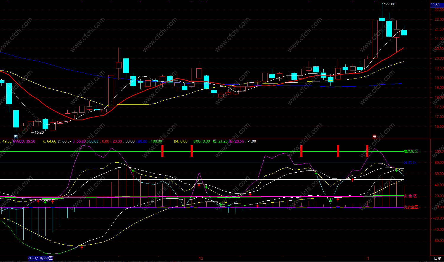 经典指标中最常用的是KDJ与MACD指标。KDJ指标是一种超前指标,运用上多以短线操作为主;而MACD又叫平滑异同移动平均线,是市场平均成本的离差值,一般反映中线的整体趋势。
