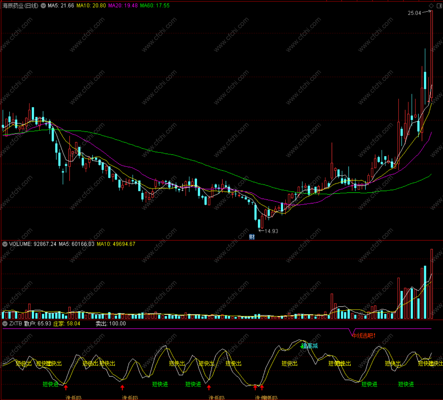当出现‘短快进’字样时,即可买入,当出现‘中线逃吧’字样时,即可卖出,当出现‘逢高减’字样时,即可减持。