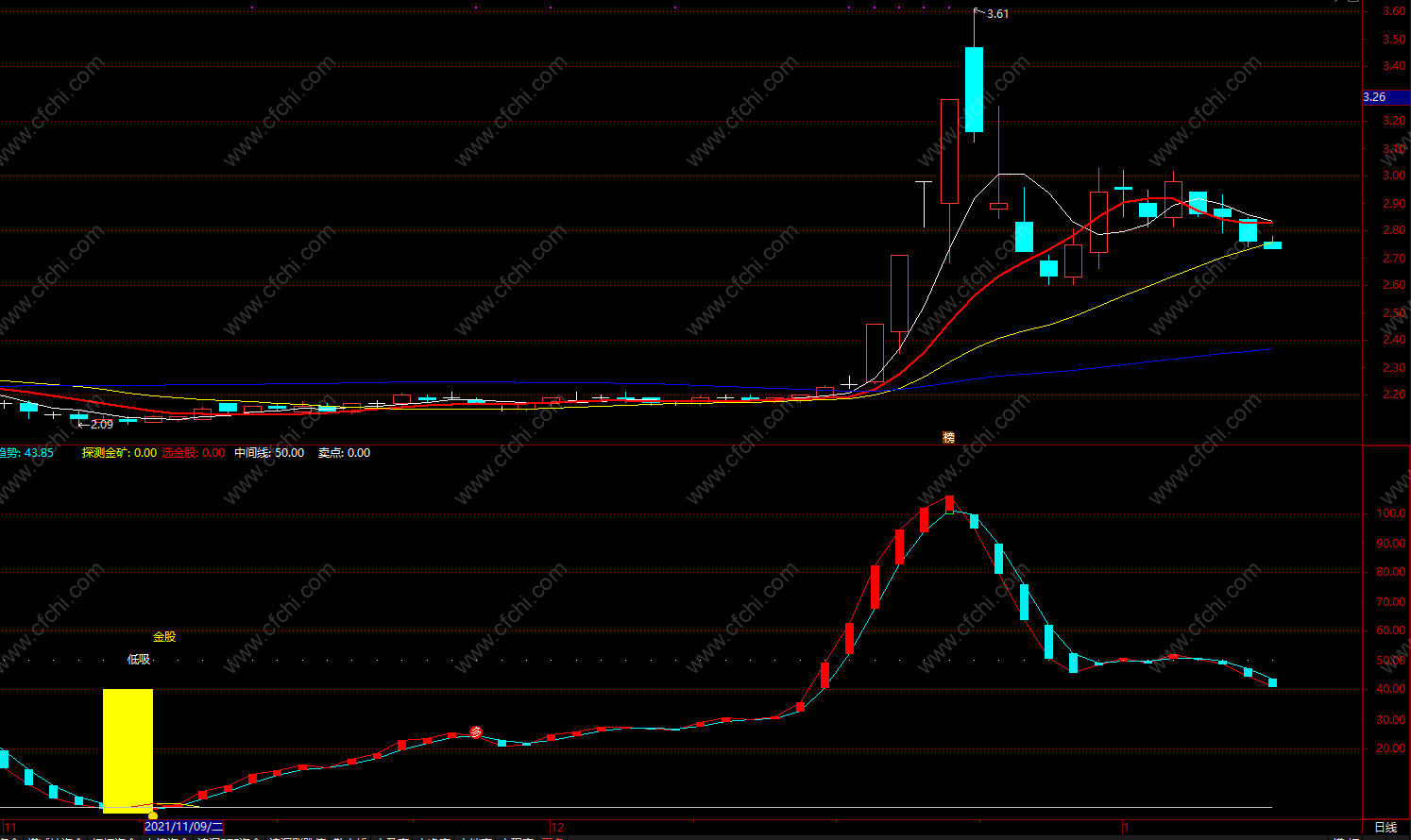 财富池指标公式网(www.cfchi.com)提醒您:指标公式是通过数学逻辑角度编写而来,仅是股票分析环节中的一个辅助工具,对股票选股效率和分析便捷上起到一定的作用,股市是具有不确定性和不可预测性的,请正常对待和使用指标公式!