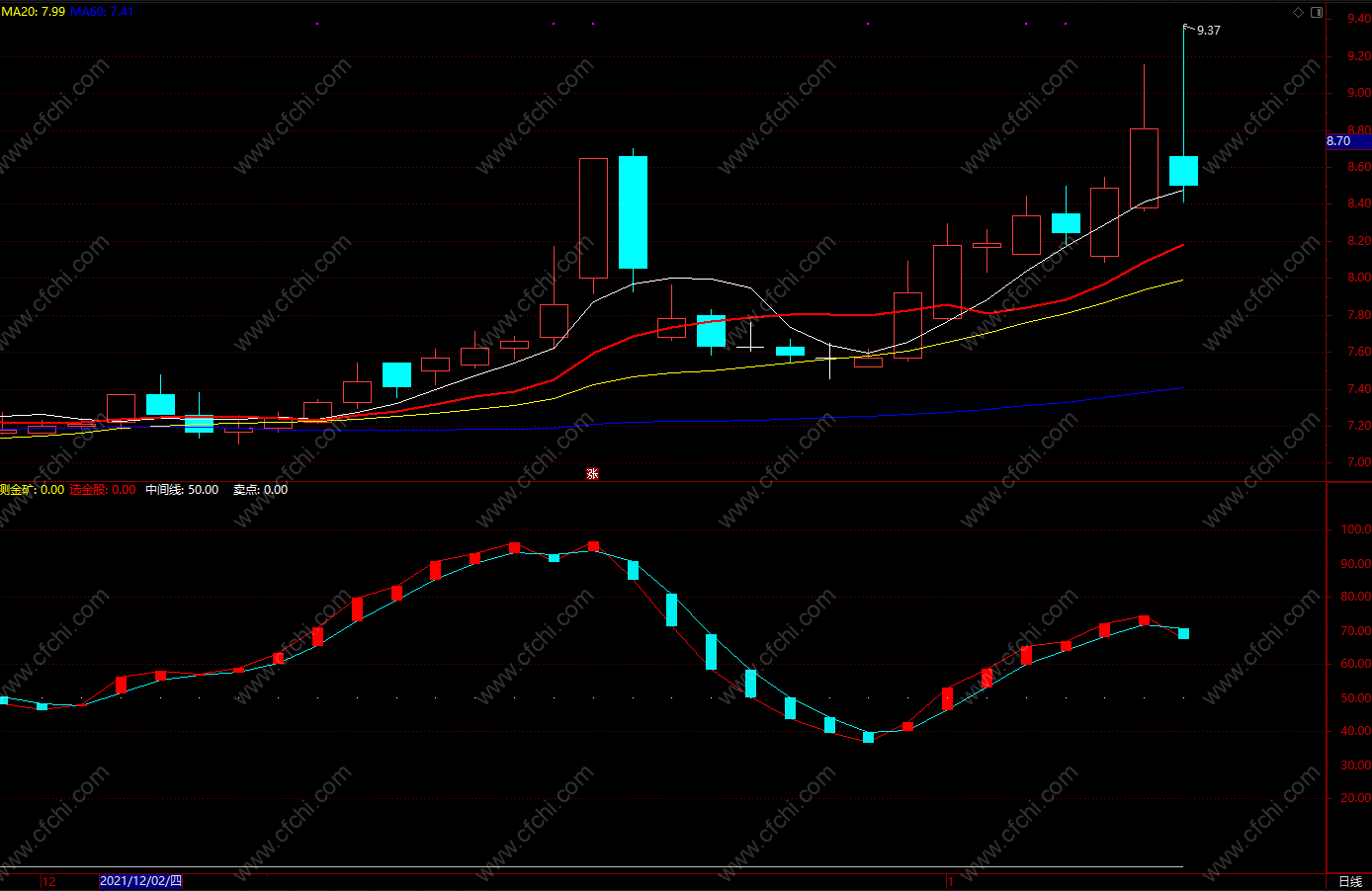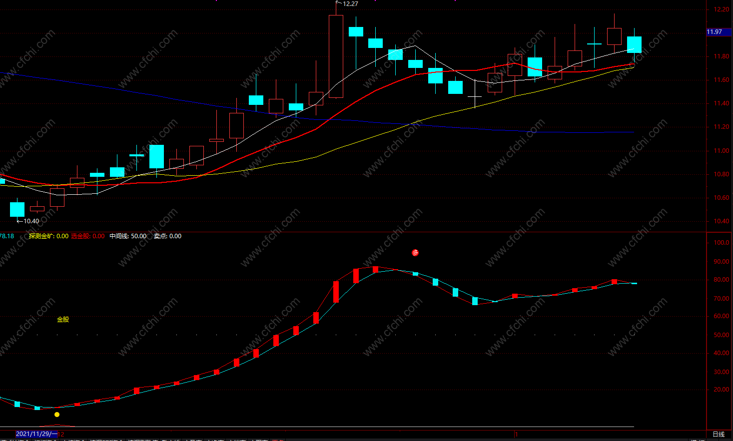 红绿两线低位金叉出现“金股”字样为买入信号,反之,高位红绿两线死叉为卖出信号。
