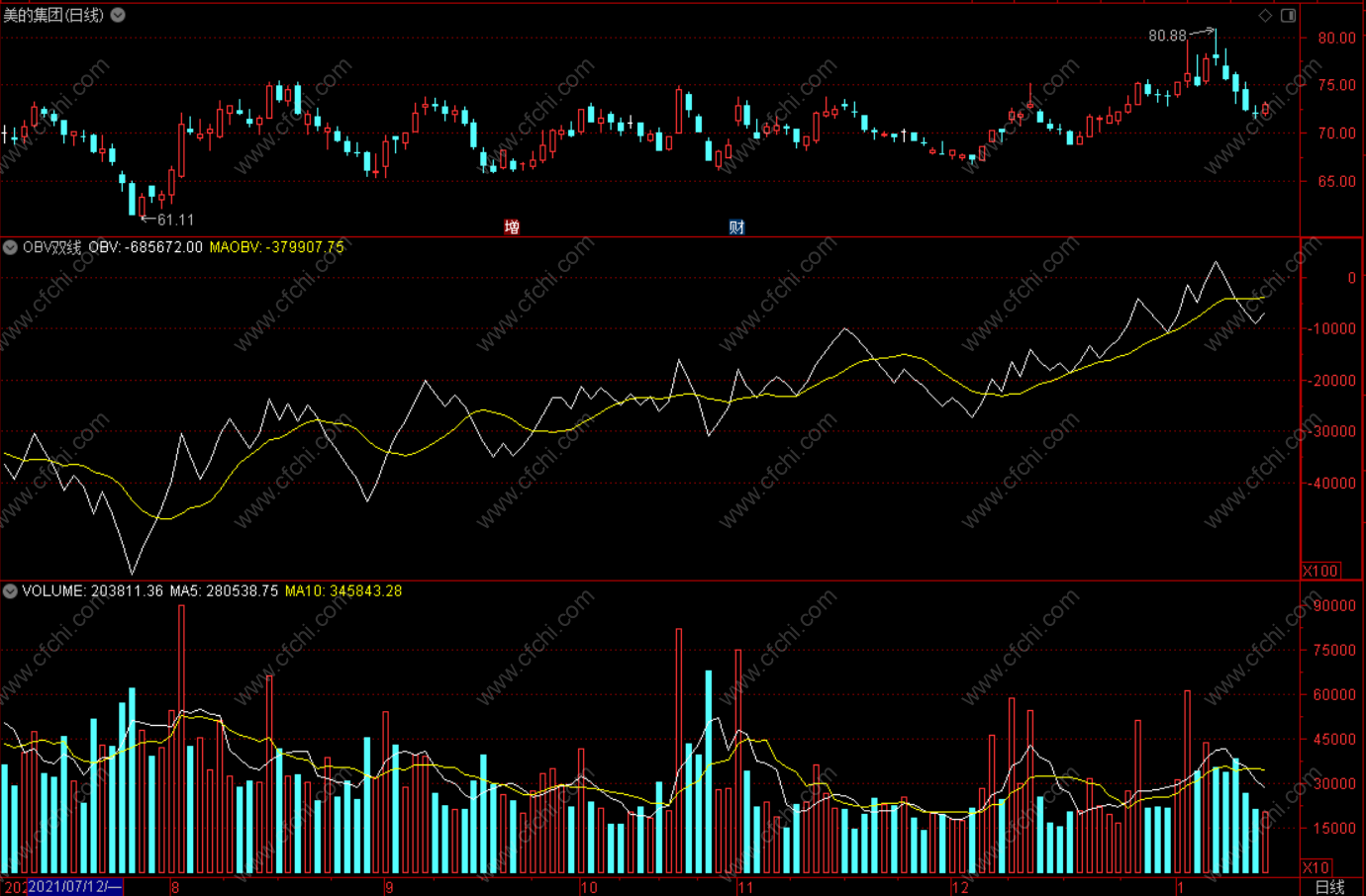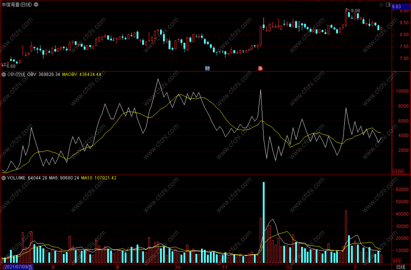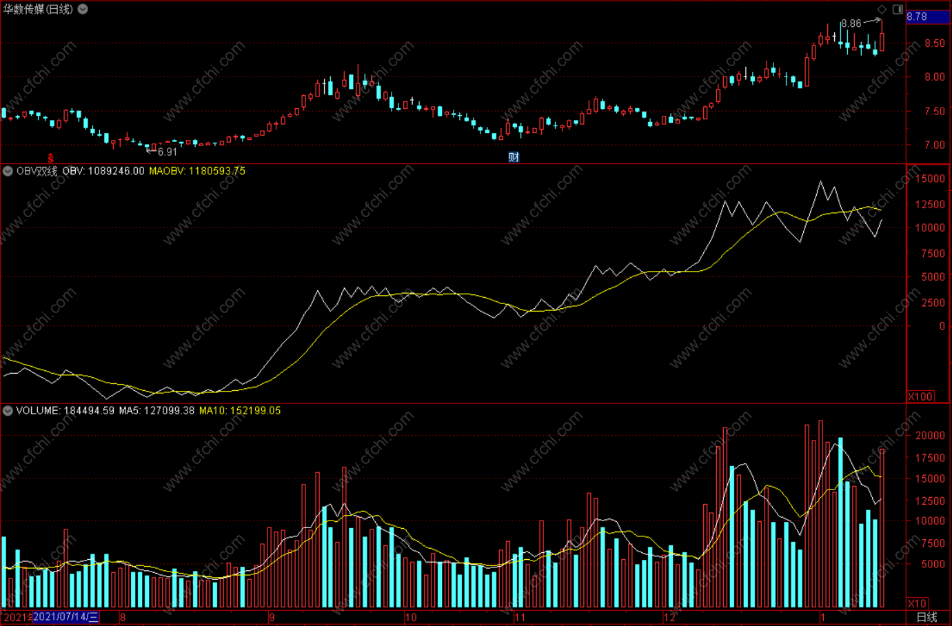 (OBV双线指标 通达信副图指标公式 无未来 源码)