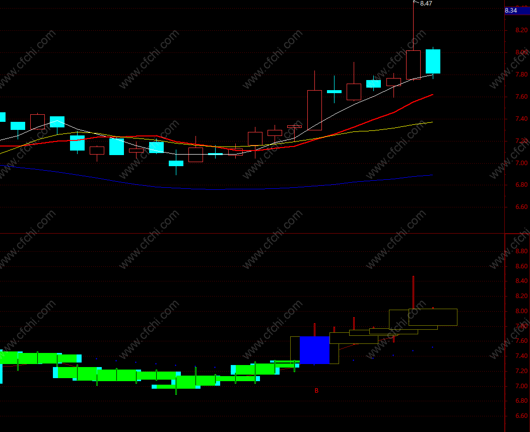 一个包含明确B、S点的指标,我用了多年了,一般情况下在低位出现B点,底部可能性较大,同样在高位出现S点,顶部可能性较大。