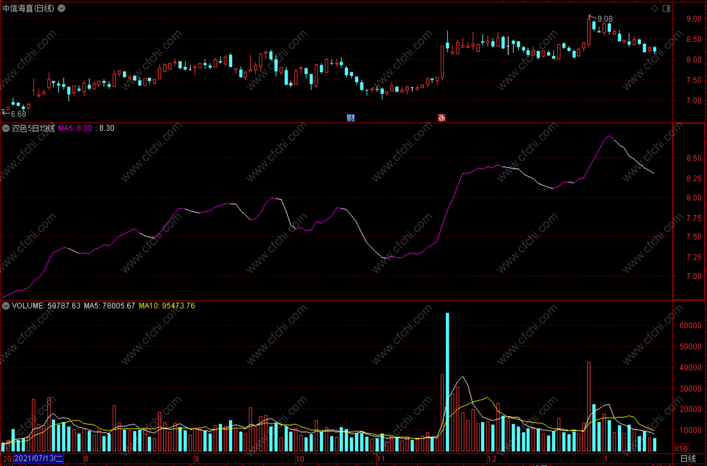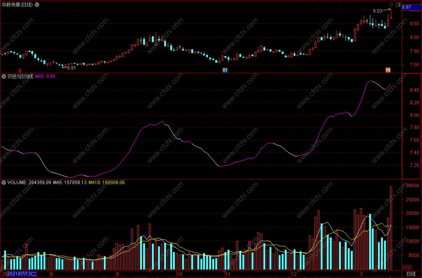 (双色5日均线 通达信副图指标公式 无未来 源码)