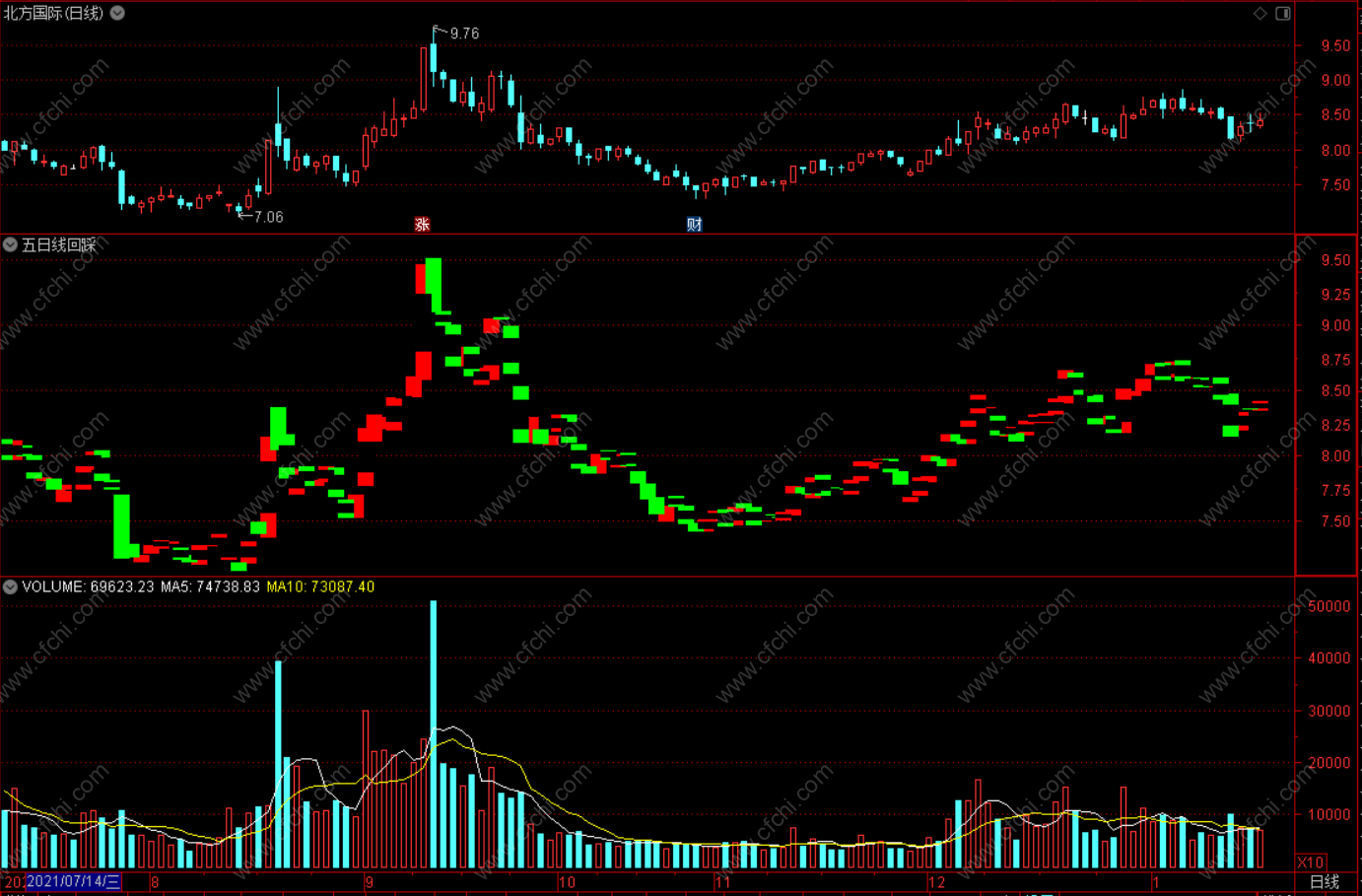 五日线回踩指标 通达信副图指标公式 无未来 源码