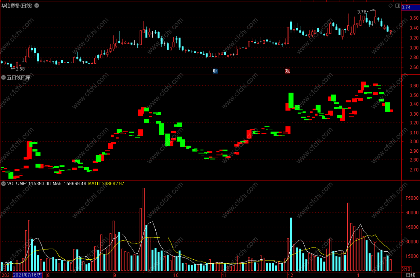 (五日线回踩指标 通达信副图指标公式 无未来 源码)